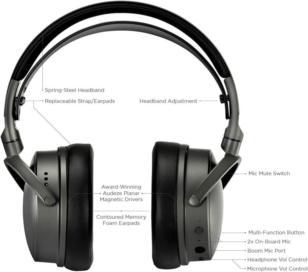 80+ hours of low-latency wireless gameplay, and get a day of gaming with just a 20 minute charge. You can also connect via Bluetooth and USBAudeze’s unsurpassed 90mm Planar Drivers (about 3 times larger than other headsets) deliver low bass performance and dynamicsA.I. noise filtering technology from our Filter Speakerphone dramatically reduces all background noises from both the boom mic (designed by our friends at Shure) and the built-in earcup mics. No more noise from vacuums, babies crying, key clicks, etcAlternate for PS version: Works with PlayStation, Mac, PC, and Switch (not for Xbox). Not all features may work on all platforms. Use our free Audeze HQ app to set your own EQs and other featuresThis model supports Xbox, PlayStation, Mac, PC, and Switch, and includes a Dolby Atmos license