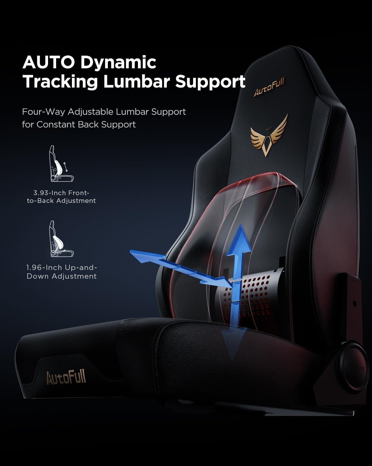 AutoFull M6 Gaming Chair, Ergonomic Office Chair with Dynamic Lumbar Support, 6D Adjustable Armrests and Footrest (Black)