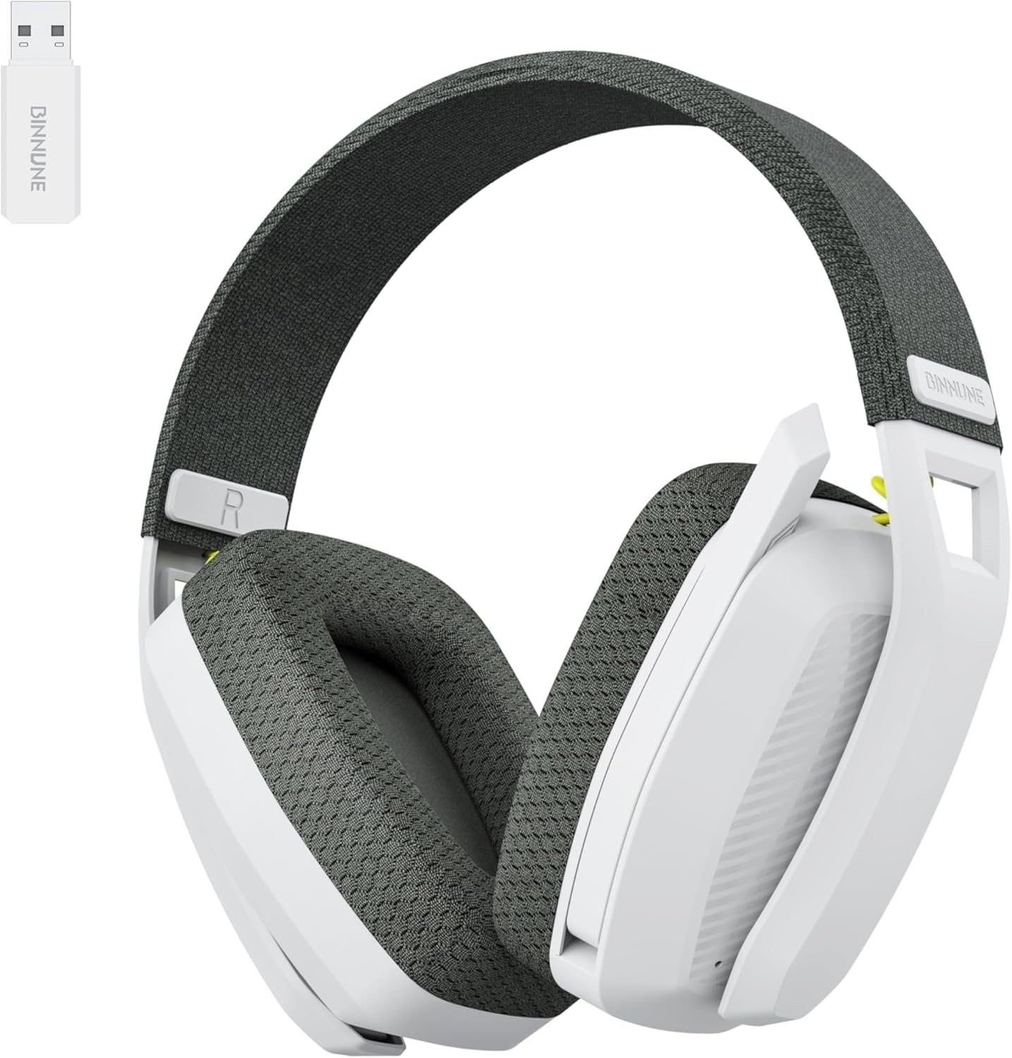 BINNUNE Wireless Gaming Headset with Flip Microphone for PC, PS4, PS5, 2.4GHz Wireless Bluetooth Gaming Headset Headphones with Mic for Laptop Computer, White, White/Gray