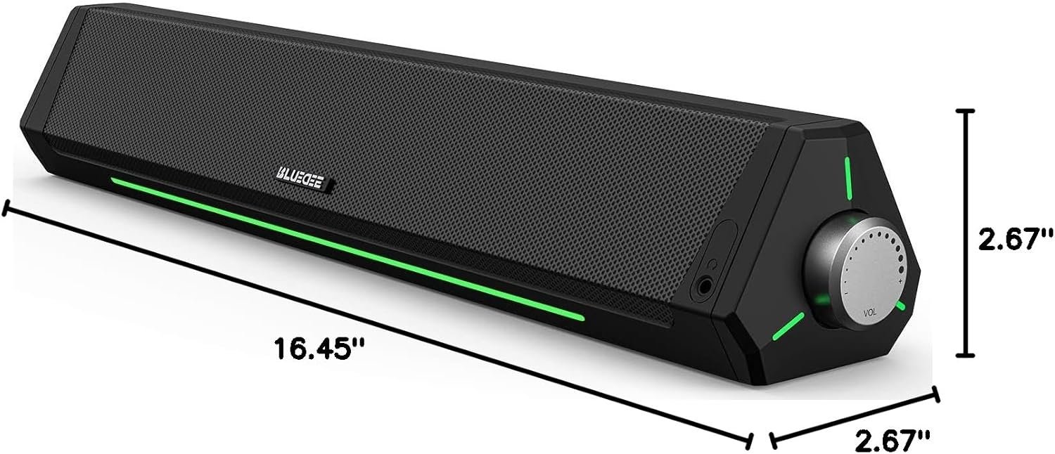 BLUEDEE Computer Speakers, Bluetooth Soundbar, HiFi Stereo, 3.5mm Aux-in Connection, USB Powered Speakers for Desktop Monitor, PC, Laptop, Tablets