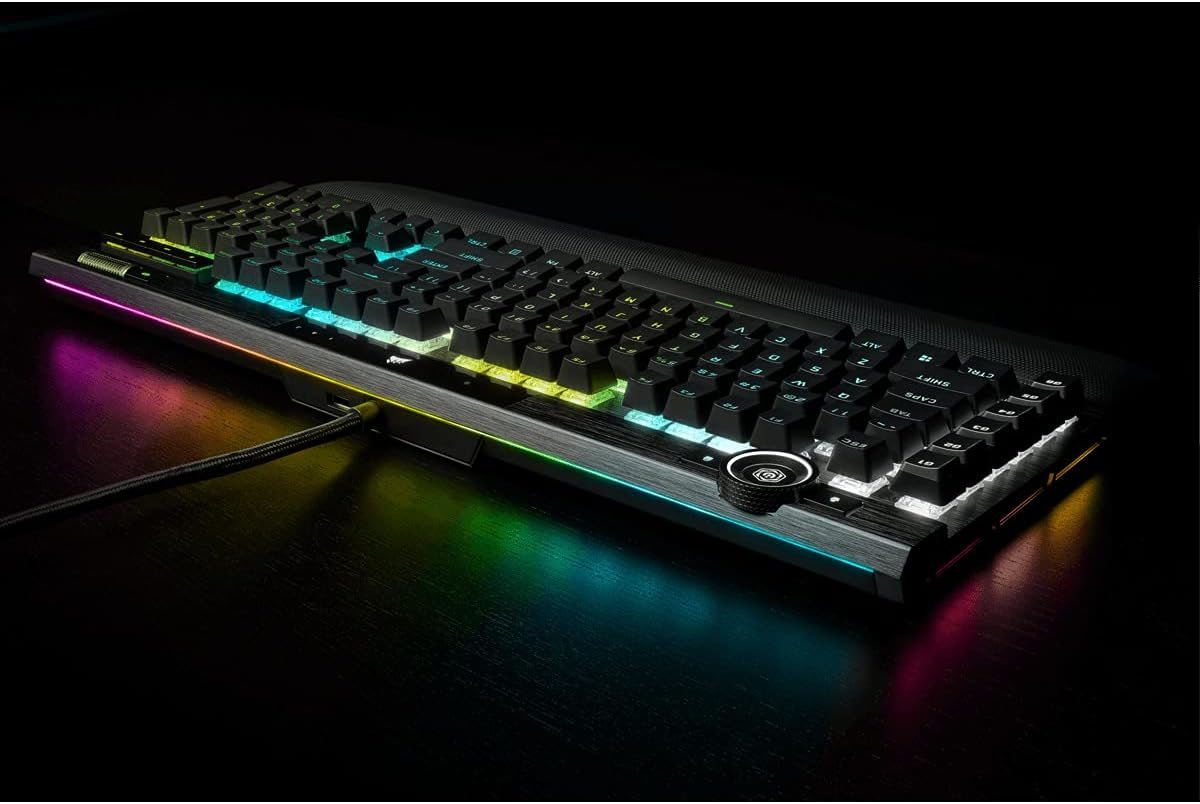 The Centerpiece of Your Setup: The CORSAIR K100 RGB boasts a refined design bolstered by a durable aluminum frame, dynamic per-key RGB backlighting, and a 44-zone three-sided LightEdge.