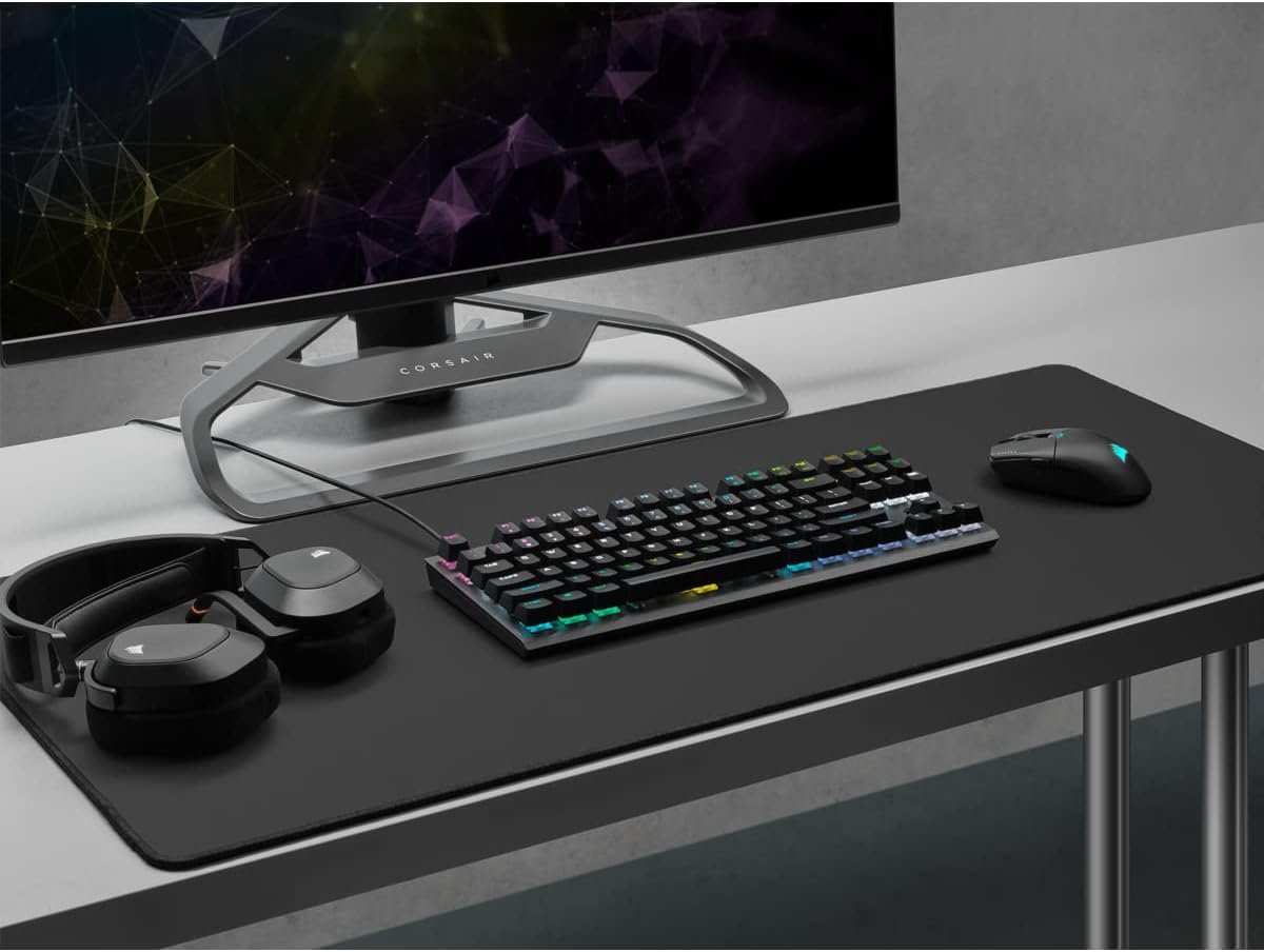 Exclusive CORSAIR OPX RGB Optical-Mechanical Keyswitches: Hyper-fast input with 1.0mm actuation distance and smooth linear travel, guaranteed for 150 million keystrokes.
