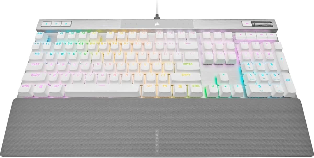 Corsair K70 PRO RGB Optical-Mechanical Gaming Keyboard – OPX Linear Switches, PBT Double-Shot Keycaps, 8,000Hz Hyper-Polling, Magnetic Soft-Touch Palm Rest – NA Layout, QWERTY – White