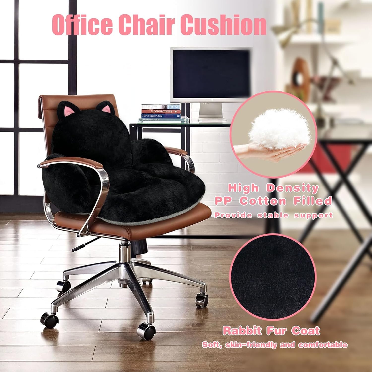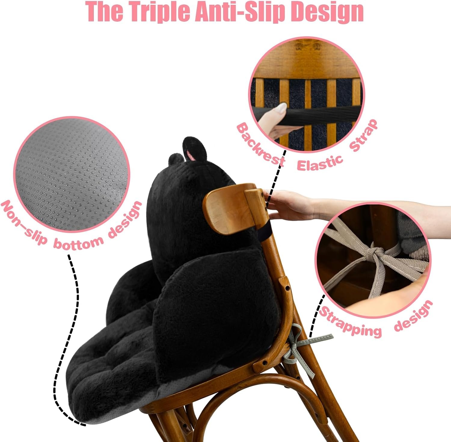 Durable & Comfort: Our cute seat cushion is filled with highly elastic pp cotton inside;Relaxes the spine and hips; There are 4 fixing points at the bottom of the cushion to prevent deformation problems caused by prolonged use