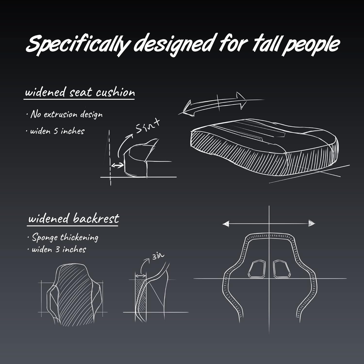 [High Quality Guarantee] According to market feedback, we purposely upgraded the T-back bar to steel plate, adding 100 lbs of shock load and the gaming desk chair also adopts a heavy-duty base. Whether teens or adults can use our chairs with confidence.