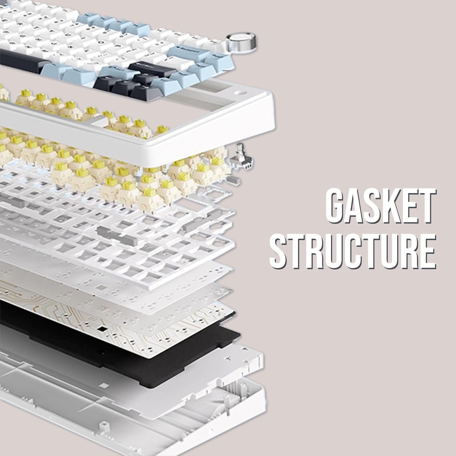 【Optimized 75% Compact Layout&Innovative Leaf-Spring Gasket Structure】The F75 redefines space efficiency with its 75% compact layout. This design integrates all the essential keys in a smaller footprint, making it perfect for streamlined desks and mobile setups without sacrificing functionality. Experience the pinnacle of comfort with the leaf-spring gasket structure. This advanced design ensures a flexible yet firm typing experience, reducing fatigue during prolonged use while maintaining a consistent and responsive key feel.
