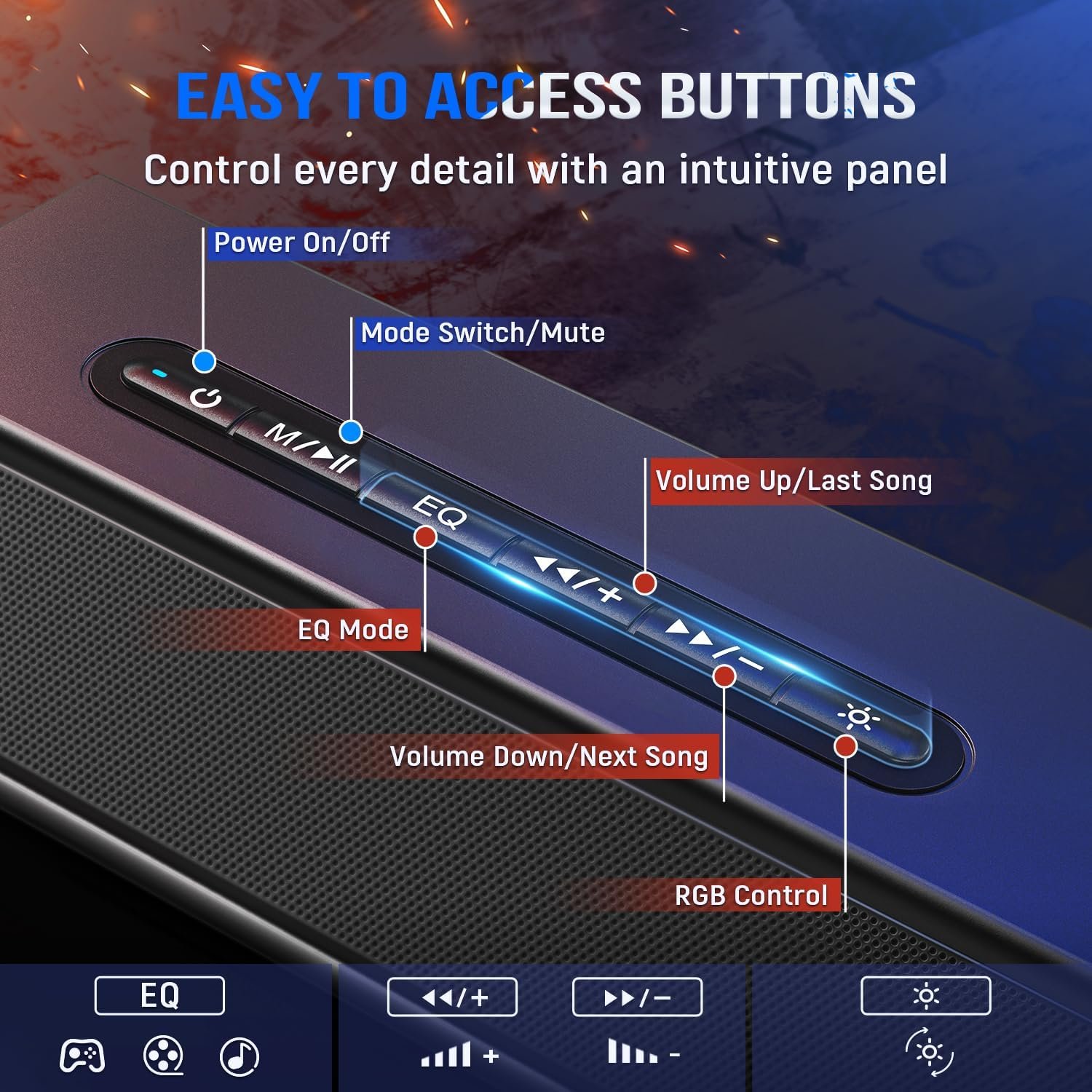 [Convenient Function Key] You have easy access to essential controls via the desk speakers, including volume adjustment, EQ mode, and music playback switch. This intuitive function allows for quick settings without disrupting gameplay, ensuring that the focus remains on the action.