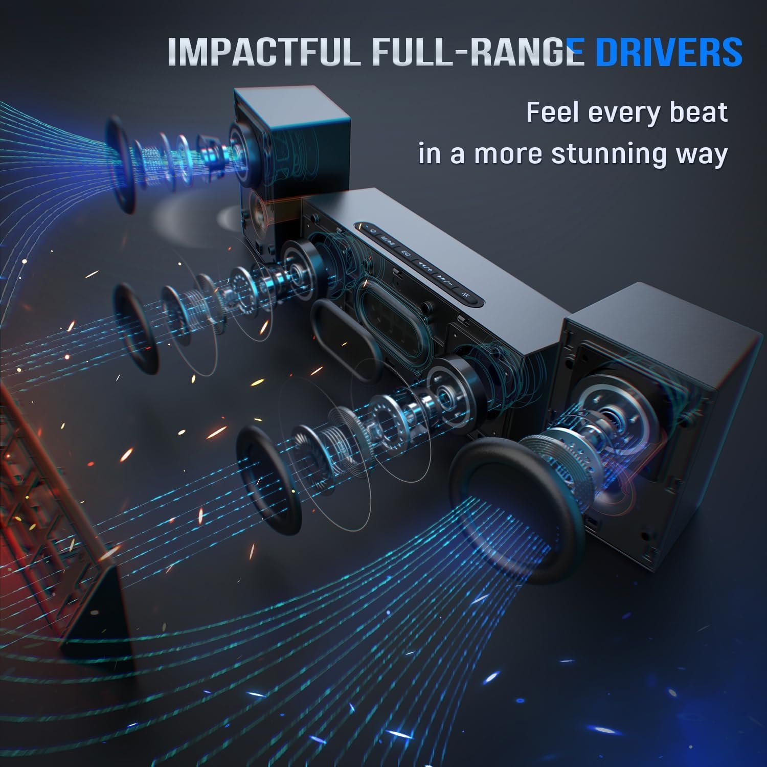 [Powerful Speaker Drivers] AC power drive the gaming monitor speakers drivers to deliver crystal-clear treble and deep and rumbling bass that enhances explosion, footstep, or note of the game soundtrack. Whether it’s the subtle rustle of leaves or the thunderous roar of an approaching vehicle, you can feel the clear pictures in your mind via the computer speakers with subwoofer.