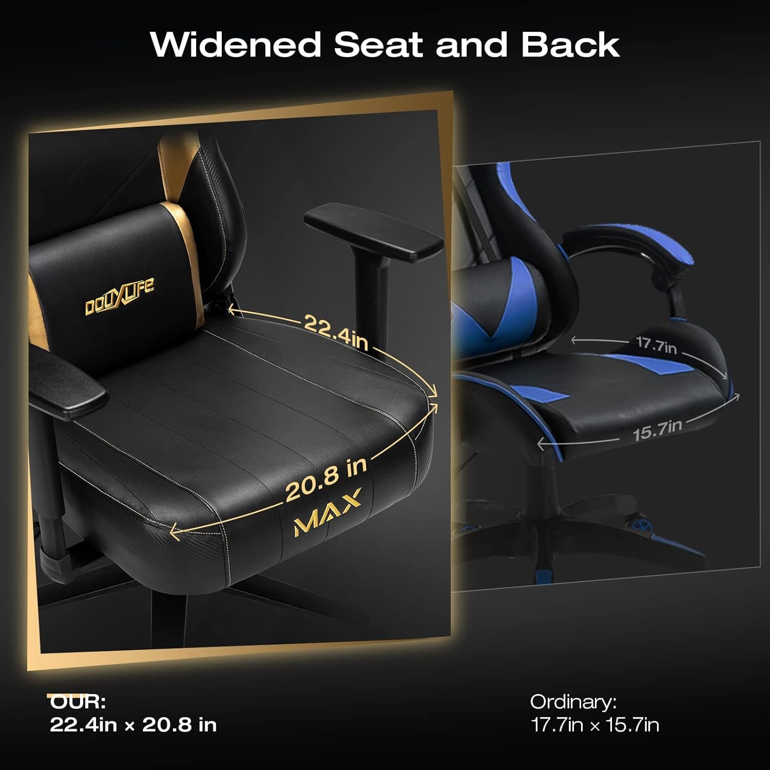 This oversized gaming chair is designed for large person.Larger and wider cushions allow you to work or play games more comfortably.