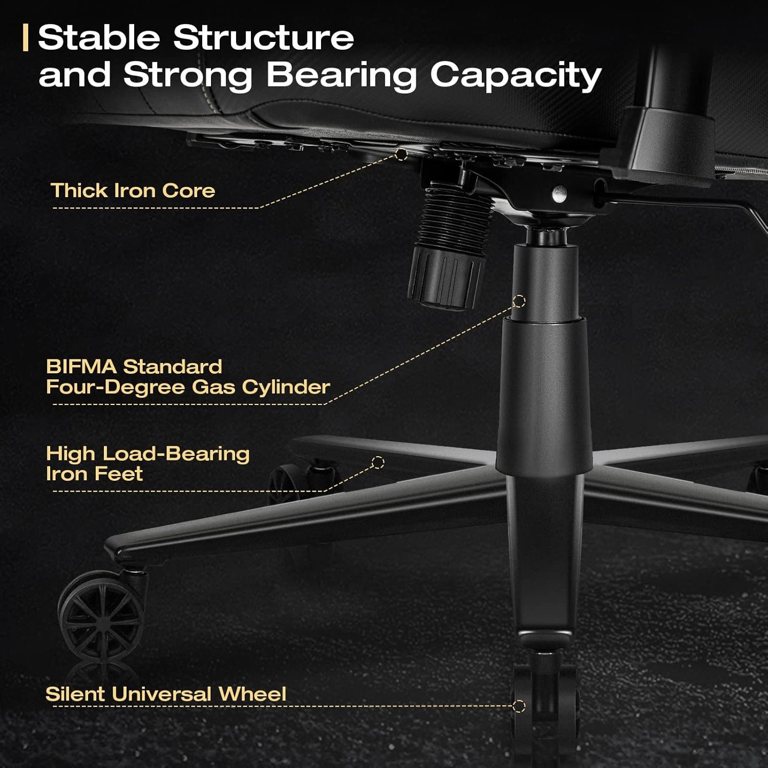 Sturdy and Durable- The video gamer chair is composed of a high-strength iron frame, a thickened explosion-proof chassis, and a four-stage gas rod, which has a stronger bearing capacity (maximum load-bearing capacity: 400lbs). high load-bearing iron feet, silent universal wheel, 360 degree swivel, and smooth sliding gives you the ultimate gaming experience with maximum security