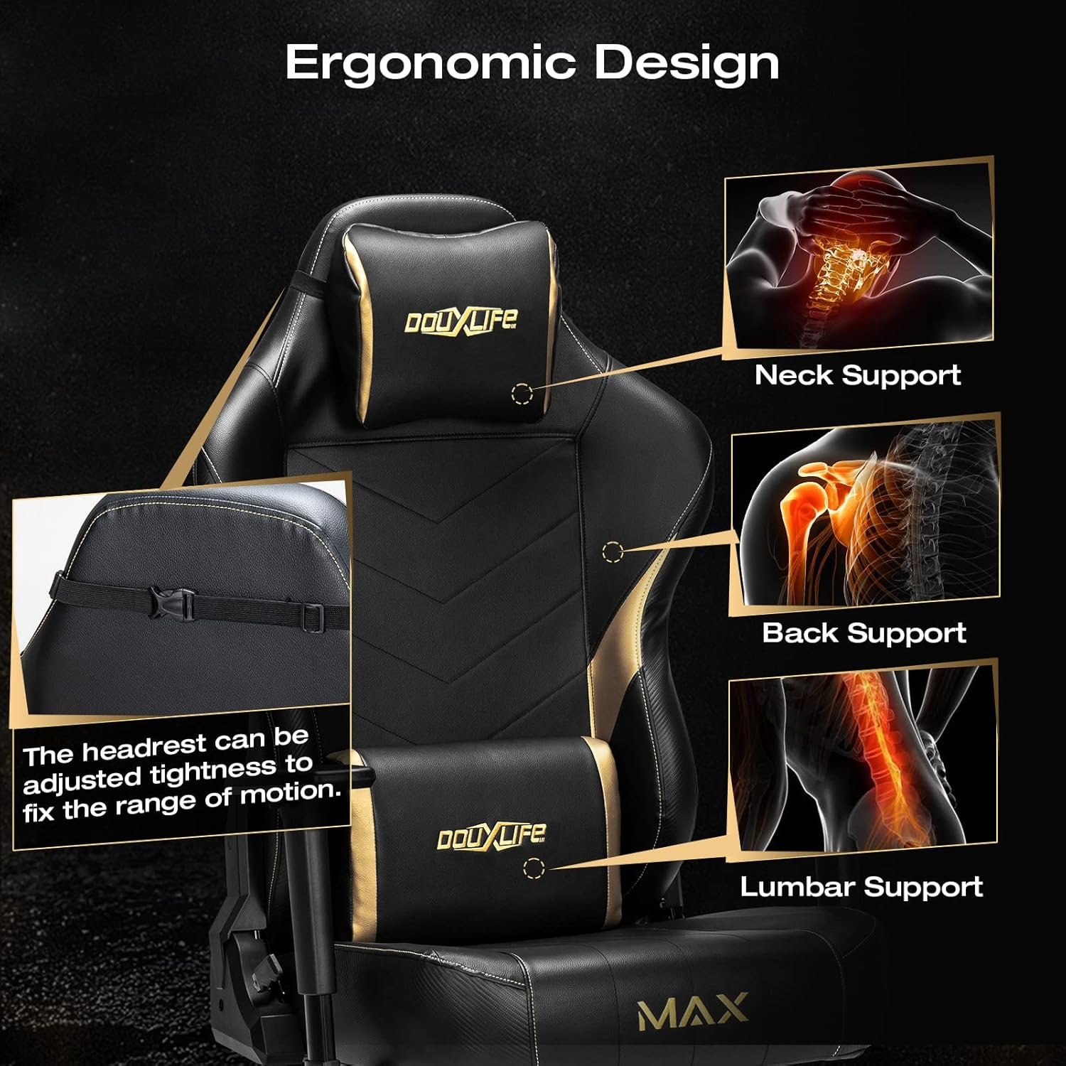Multiple Configurations- Douxlife computer chair is equipped with a detachable headrest(The headrest can be adjusted tightness to fix the range of motion.) and lumbar pillow, which can fit your back curve to the greatest extent. The 3D armrest, up and down adjustment,fore and aft movement, left and right rotation, fit your hands to the greatest extent