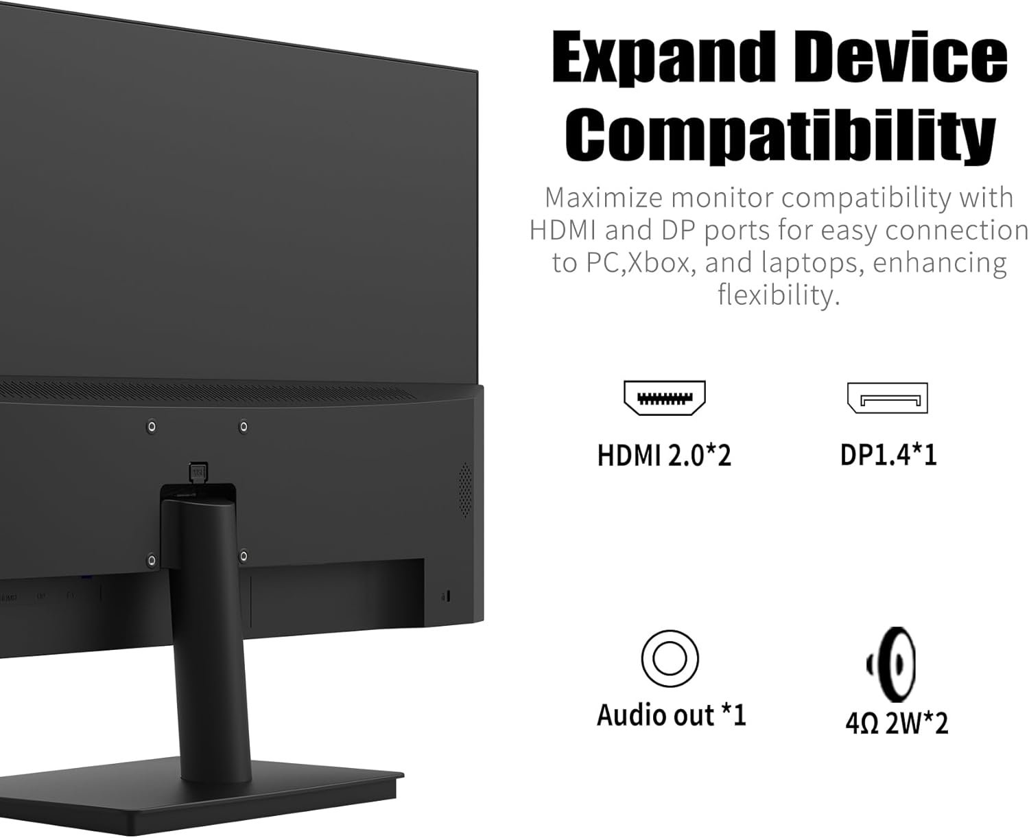 【Multi-Connection Option】Flexible connection options include HDMI x 1 (Cable Included) and DP x 1 (Cable not included). The wall-mountable feature (accessories not included) offers flexibility in positioning, allowing you to optimize your viewing experience and save valuable desk space