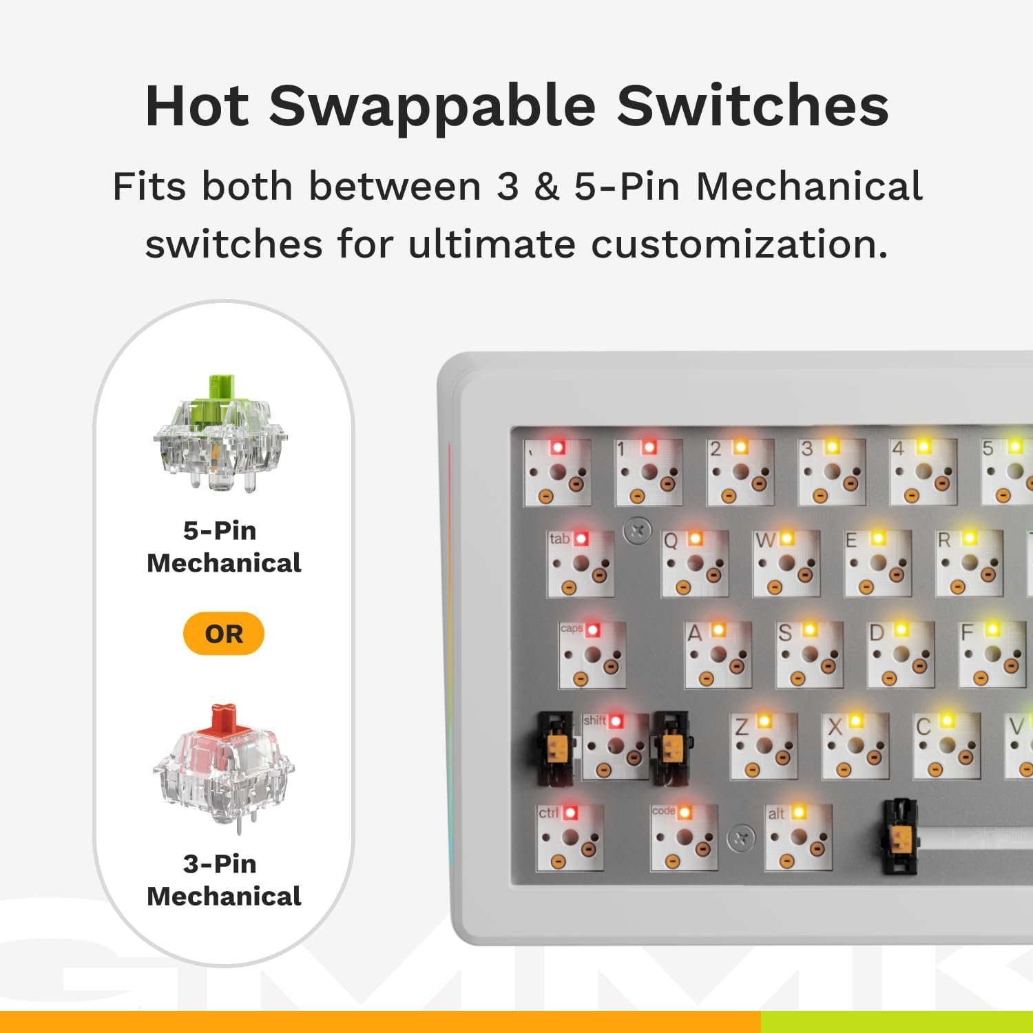 Modular Gasket System (MGS): Easily customize the GMMK 3’s internal gaskets with a simple building blocks-inspired design for a firmer or more flexible typing feel.