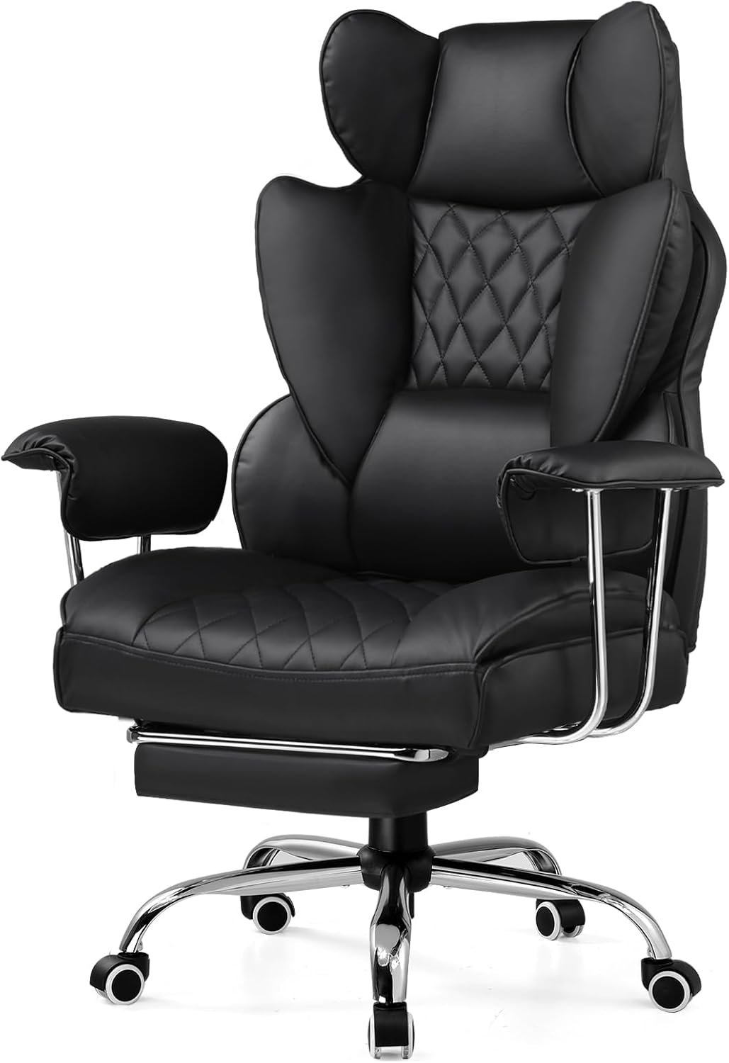 【Sofa-like Seat】 The executive chair features a pocket spring lumbar support for elasticity and heat dissipation during prolonged sitting. The widened seat, free of restricting side wings, along with an adjustable footrest, allows comfortable seating in any position. It’s as casual and free as sitting on your own sofa