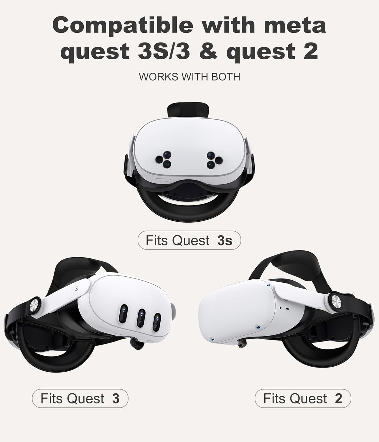 Universally Compatible With Meta Quest 3S/Quest 3/2 – Our NinjajoyOX head strap is designed for Oculus Quest 2, Quest 3 and Quest 3S headsets. The package contains two sets of connection fasteners, and you can install the corresponding fasteners according to the model of your VR headset. The ergonomic head strap of Meta Quest 3 can effectively reduce the pressure on your face and head when playing games for a long time, so that you can immerse yourself in the fantastic game