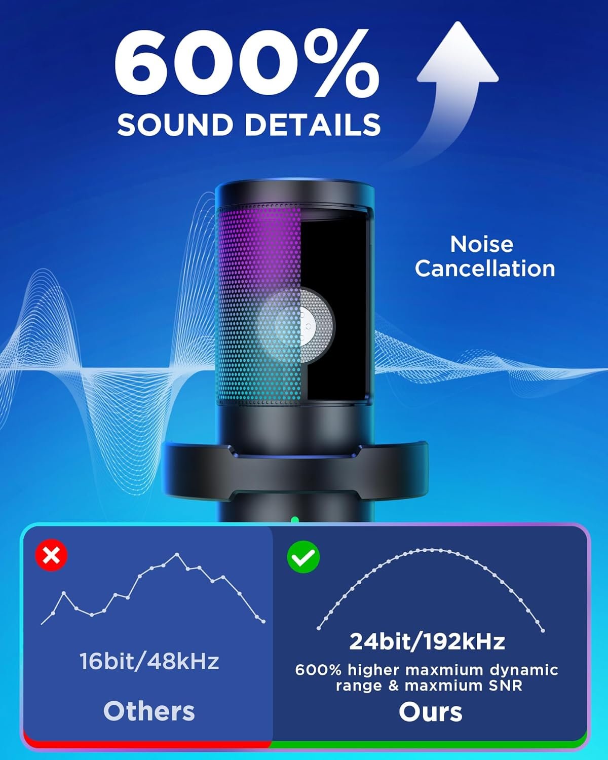 Advanced Noise-Cancelling Tech: Eliminate distractions with noise cancellation that filters out background noise with precision. Whether you’re streaming, gaming, or recording, this gaming mic ensures your voice is crystal-clear, enhancing communication and strategic gameplay for competitive teams.