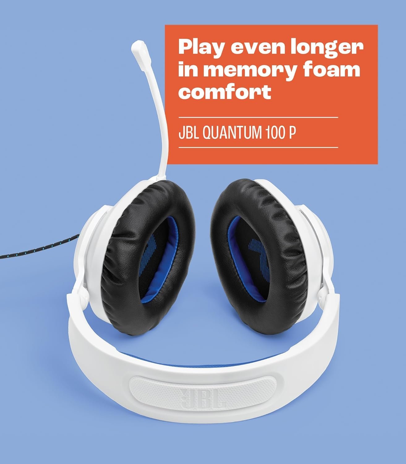 JBL Quantum 100P – Wired Over-Ear Gaming Headset with a Detachable mic, QuantumSOUND Signature, Memory Foam Comfort, Compatible with Windows Sonic Surround Sound (White)