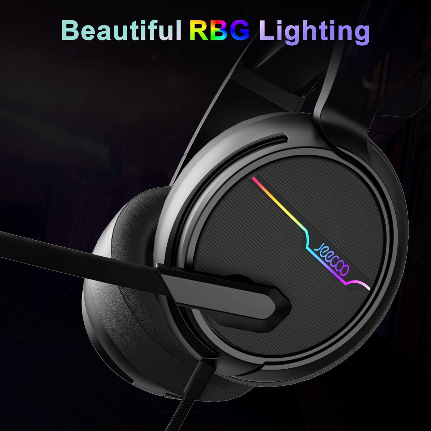 Jeecoo V20U USB Pro Gaming Headset for PC – 7.1 Surround Sound Headphones with Noise Cancelling Microphone- Memory Foam Ear Pads for Laptop Computers