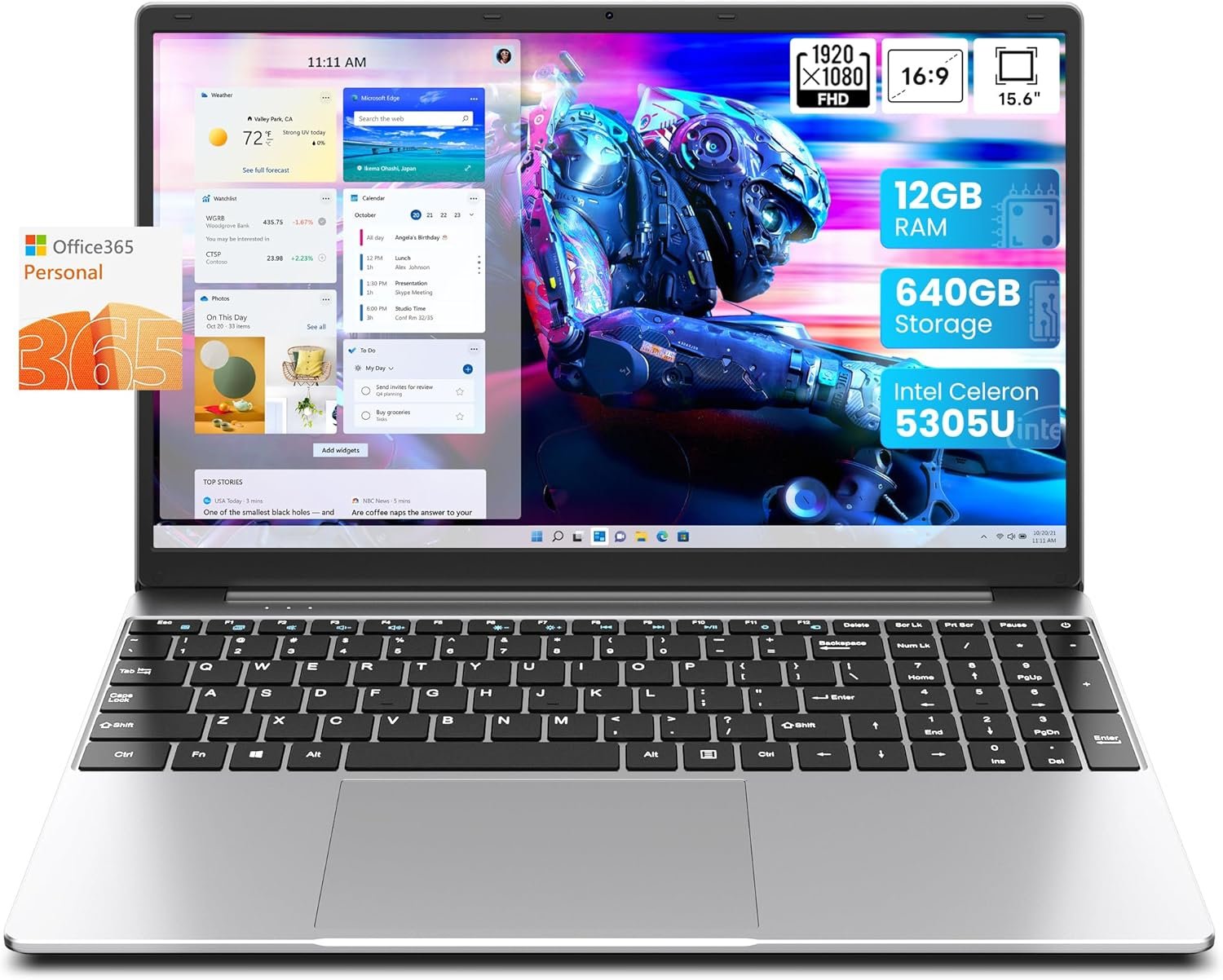jumper Laptop, 12GB RAM 640GB ROM, Office 365-1 Year 5305U Processor, 15.6 Inch Computer, FHD IPS Screen, 38Wh Battery, 2 Stereo Speakers, USB3.0 * 2, HDMI.