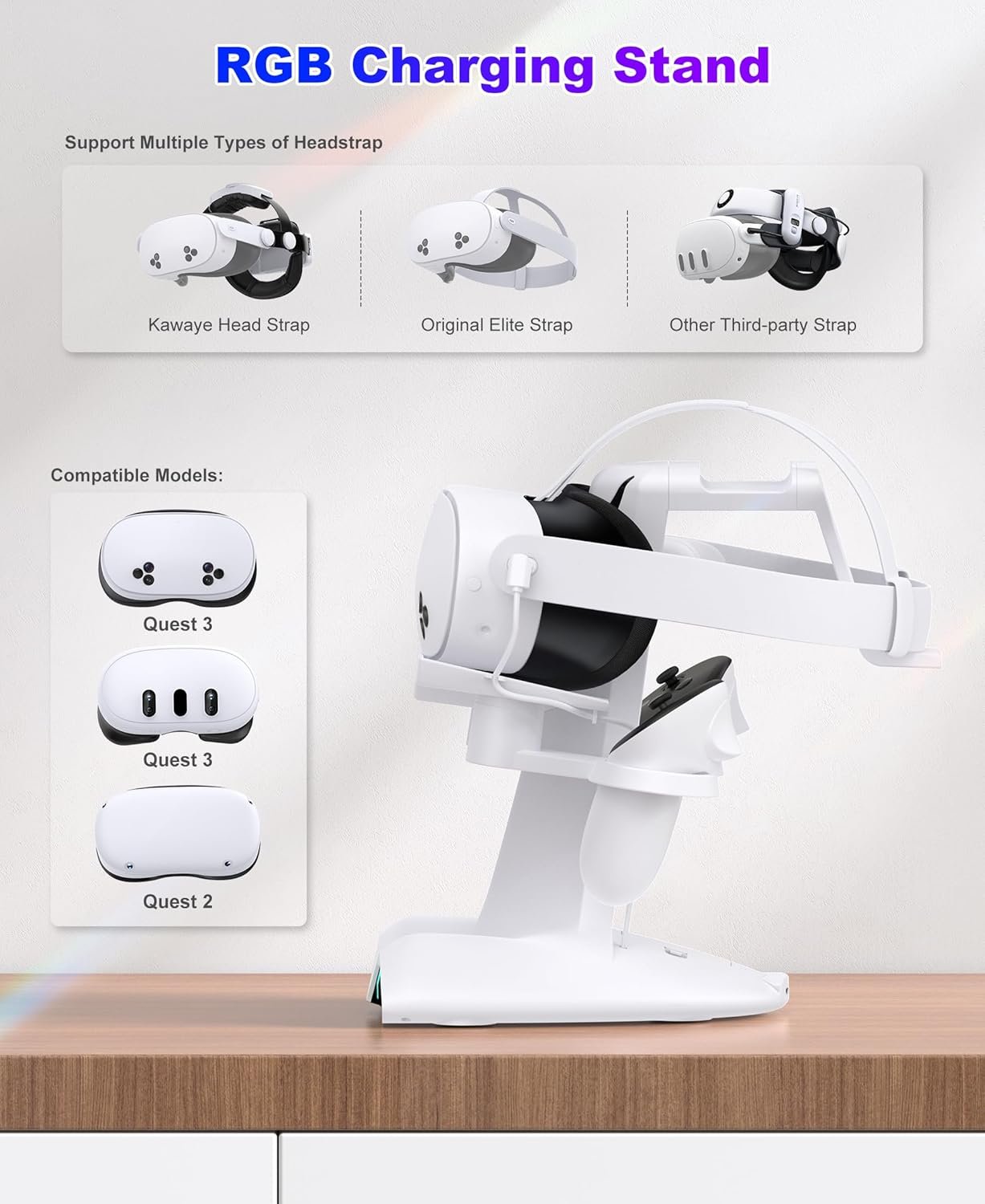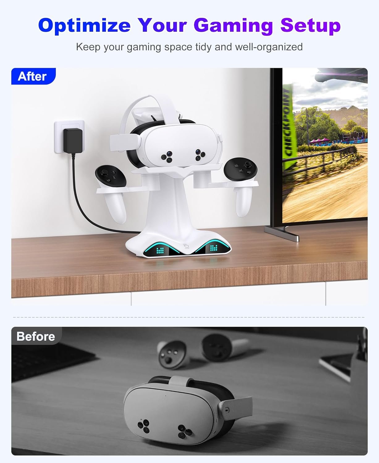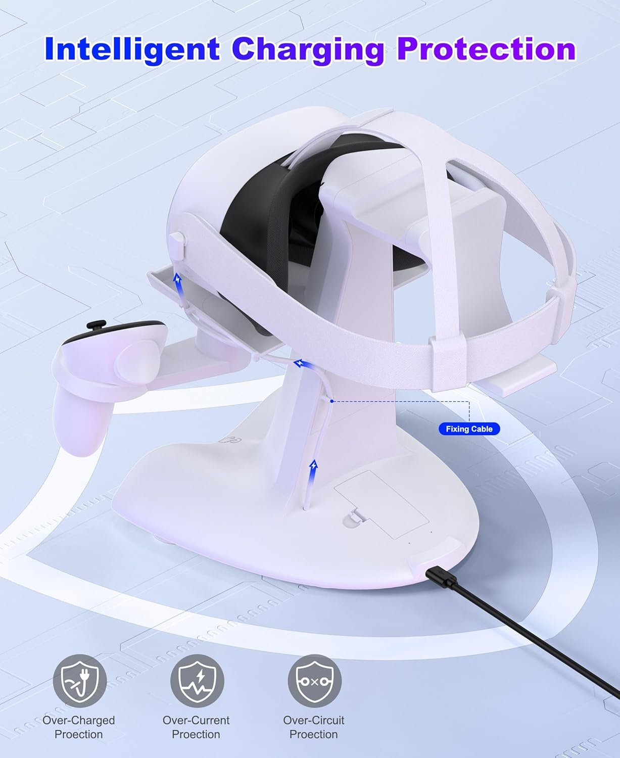 Advanced Safety & Universal Versatility – Engineered for reliability, this for Meta Quest 3/Quest2/Quest 3S charging dock features an intelligent protection chip to prevent over-voltage, overcharge, and short circuits. Safely power up for Meta Quest 2/3/3S and controller battery, even during marathon gaming sessions. The non-slip base and universal fit for head straps make it a top choice for Meta Quest 3S accessories seekers. Whether you’re using as a Quest 2 stand or a Quest 3 stand,Quest 3S stand, this dock delivers unmatched safety and durability