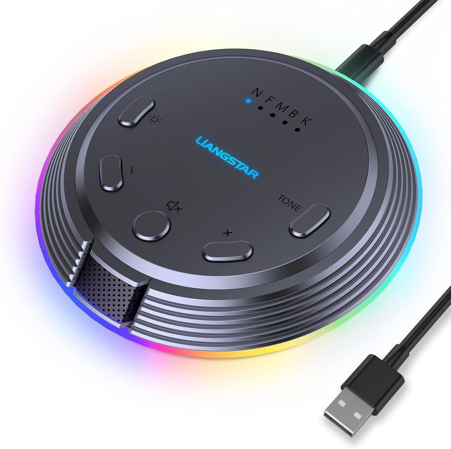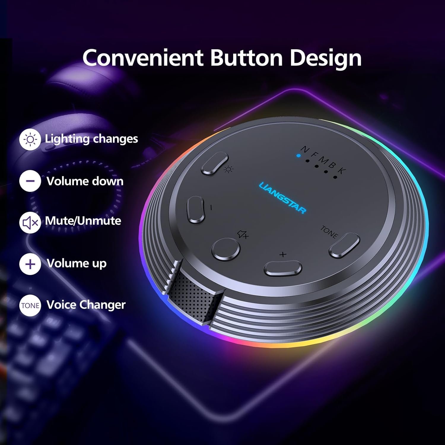 LIANGSTAR Gaming USB Microphone with 5 Voice Changes, Mute Button, Desktop Podcast Mic, Volume Control, RGB Condenser Computer Microphone for PC Gamer, YouTube, Streaming, Conference, Class
