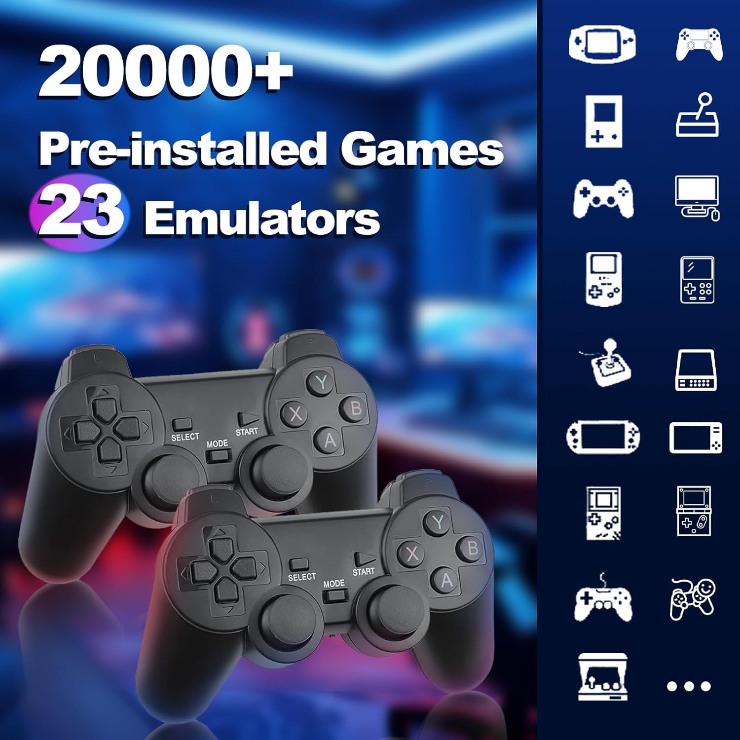 M8 Retro Gaming Console with 20,000+ Classic Games, 23 Emulators, Dual 2.4GHz Wireless Controllers, 4K HD Output, Save & Load Function, Plug & Play, Compatible with TV/PC/Projector, 64GB