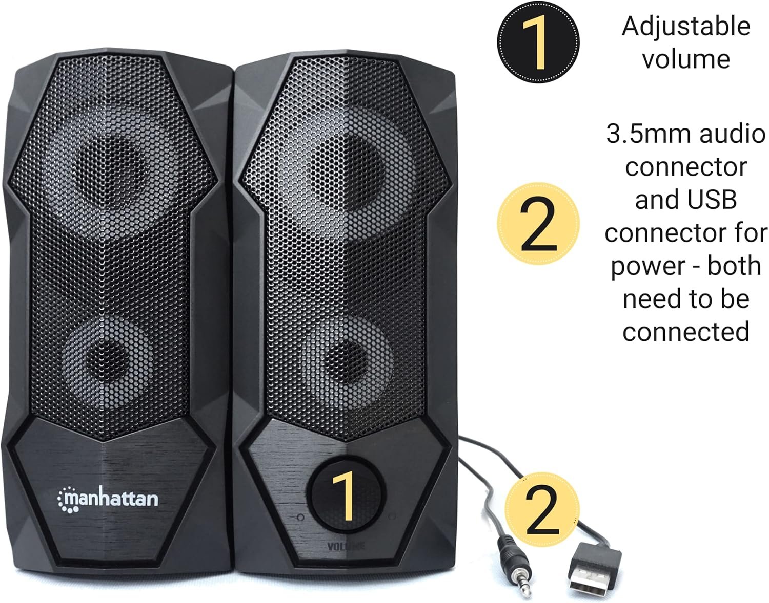 Be the first to review “Manhattan USB Powered RBG Gaming Speakers – with Stereo Sound, Long 6ft Cord, Colorful Lights, Volume Control & 3.5 mm Audio Plug – for Computer, Monitor, Laptop, PC, Desktop -3 Yr Mfg Warranty–168359”