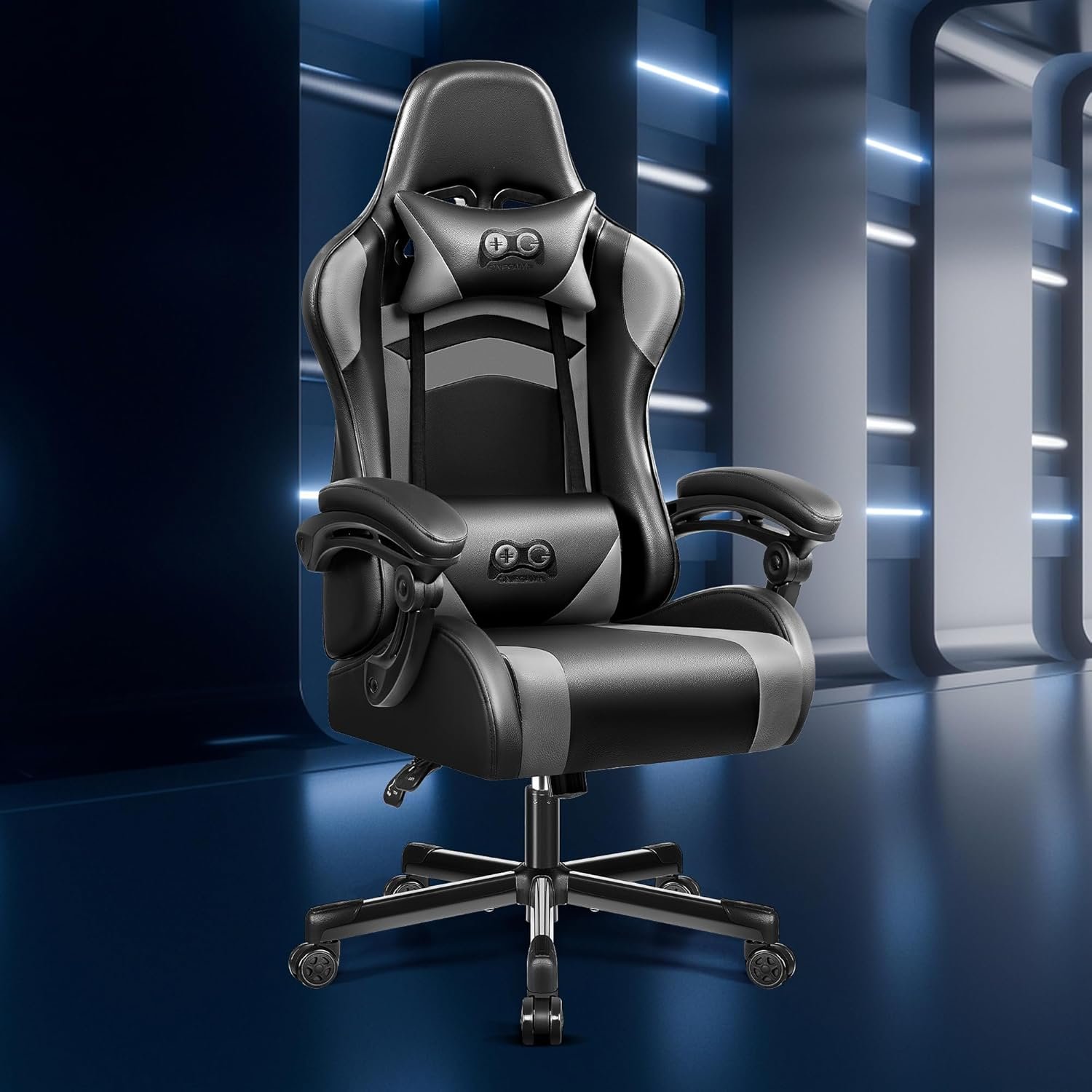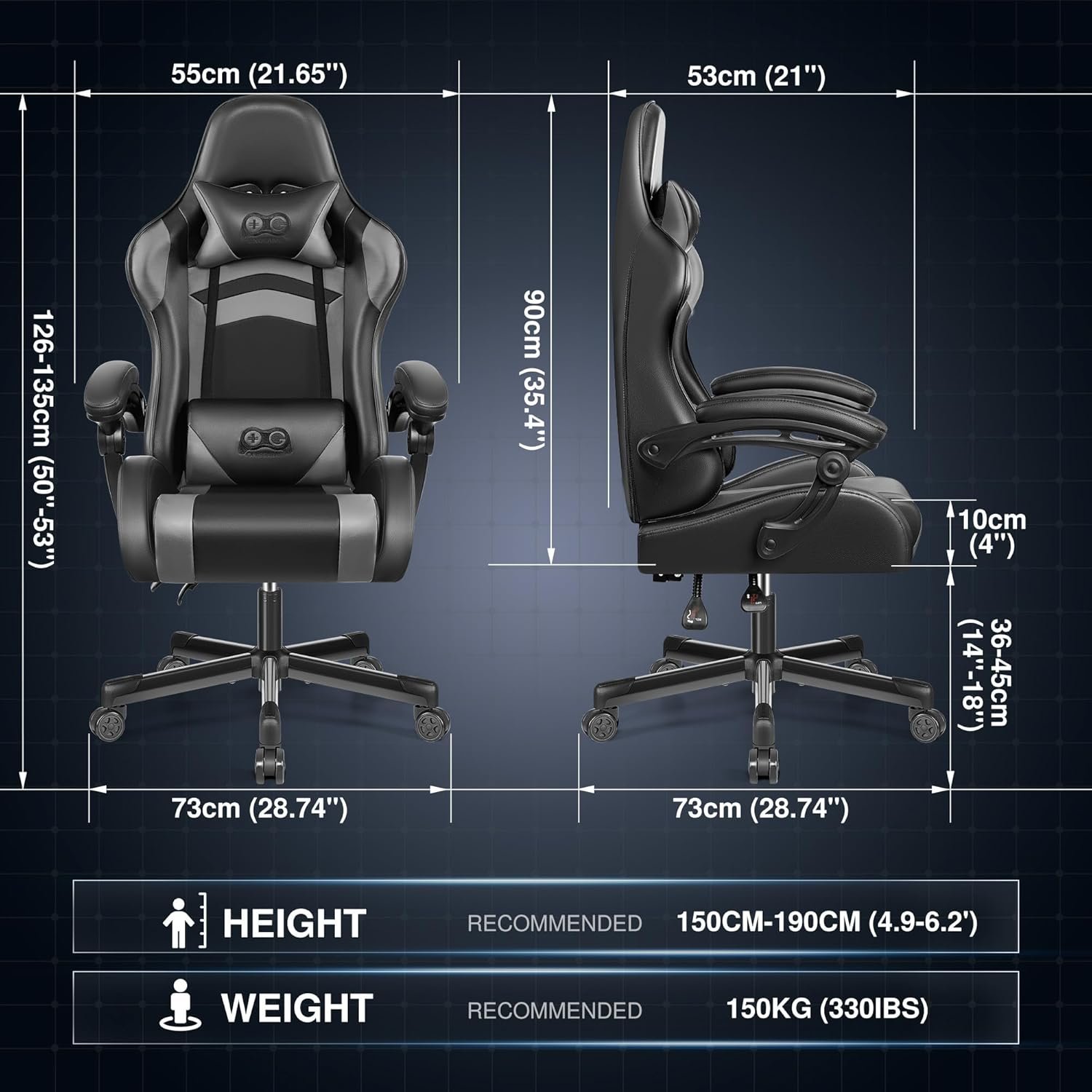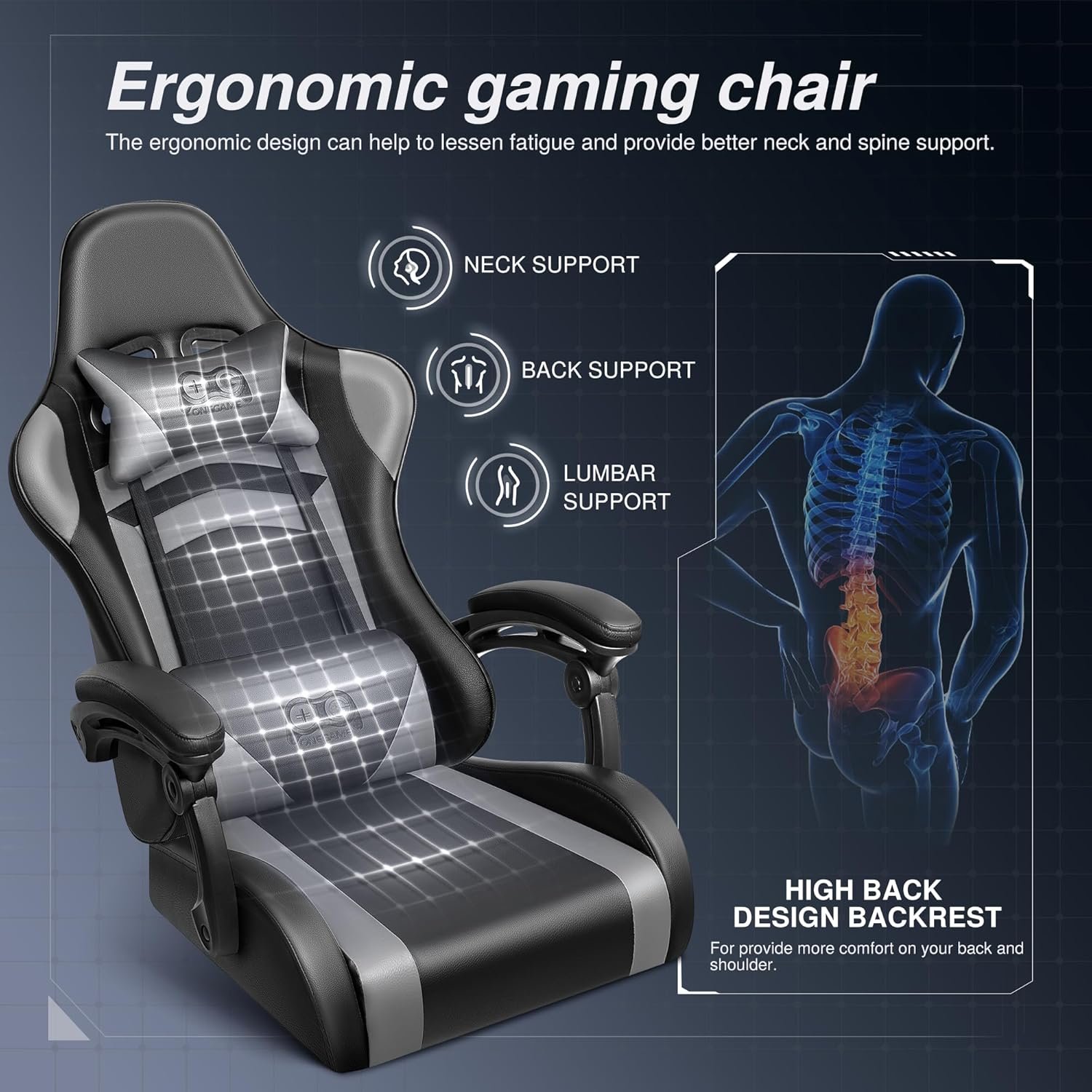 Ergonomic Gaming Chair Design: Experience ultimate comfort with high-density foam padding, a flexible headrest, and adjustable lumbar pillows. This ergonomic gaming chair provides excellent neck and back support, making it perfect for long hours of gaming, working, or relaxing.