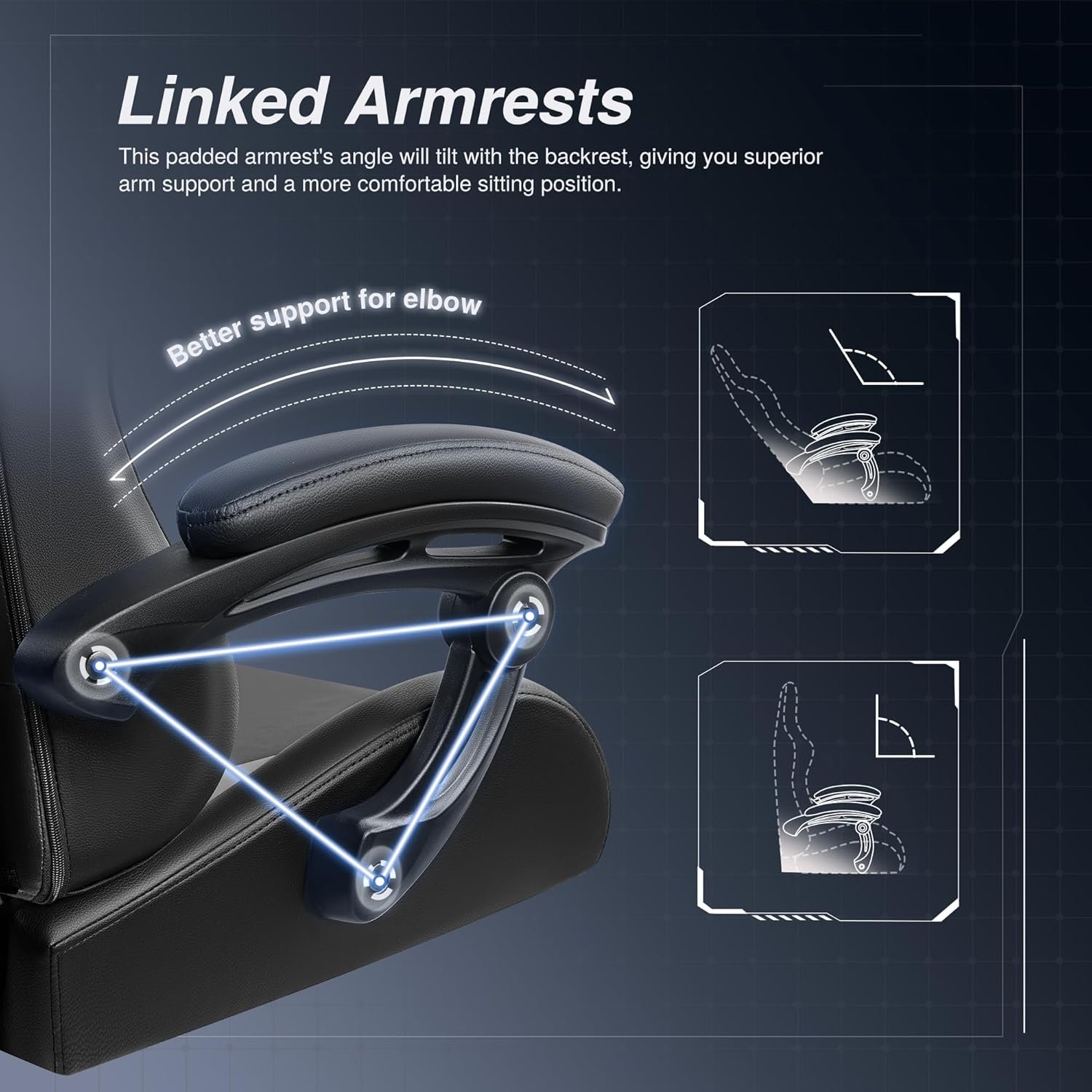 Linkage Armrest for Enhanced Support: Equipped with high-density foam-padded linkage armrests, this gamer chair moves in sync with the adjustable backrest to provide superior elbow and arm support during intense gaming sessions or work tasks.