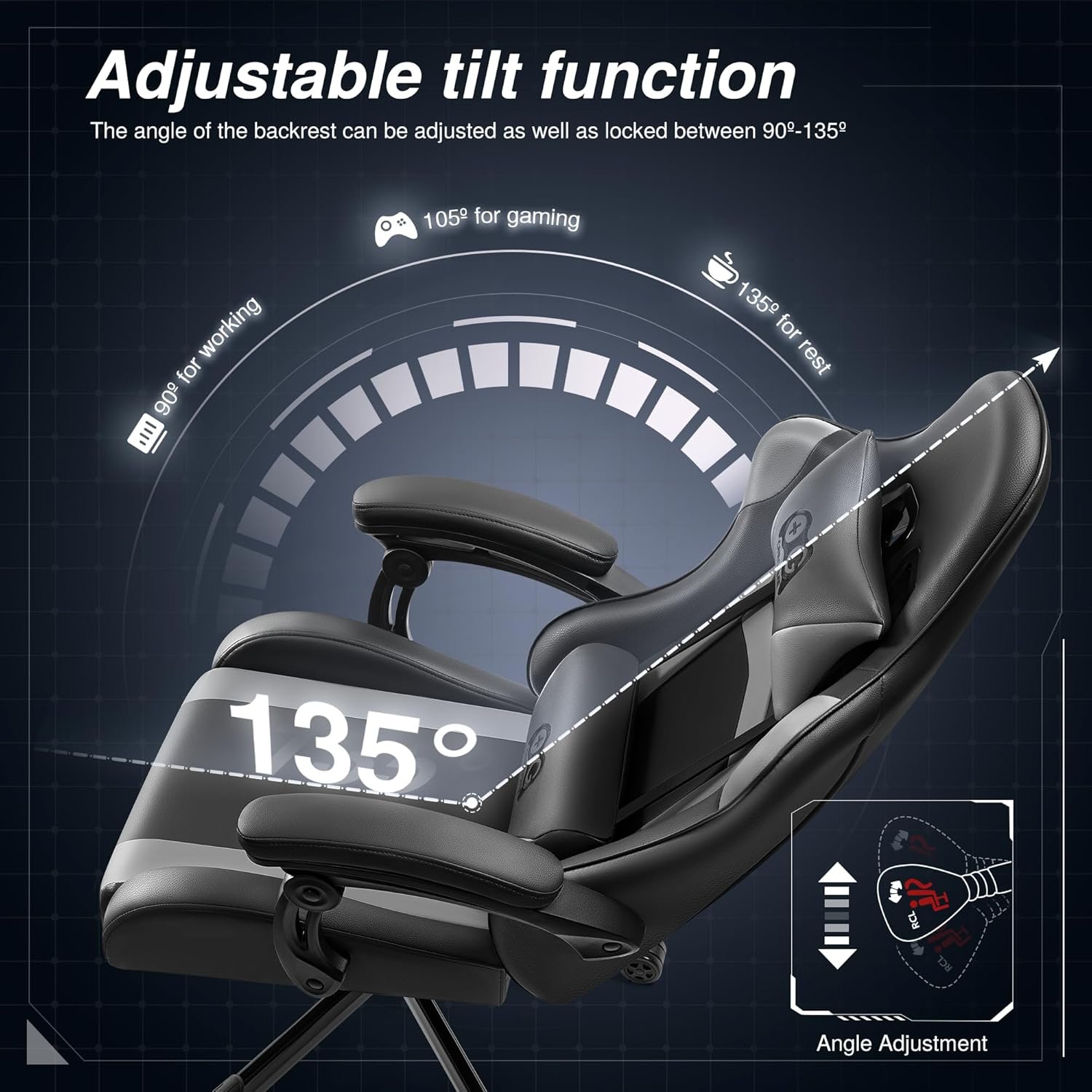 Multi-Functional Adjustments: Customize your sitting experience with a backrest that tilts between 90°-135° and a height adjustment feature. Whether you’re gaming, working, or relaxing, this computer gaming chair ensures optimal comfort for extended use.
