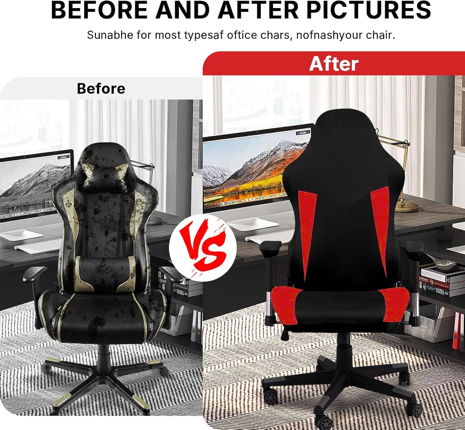 Easy to Install: The gaming chair slipcover come with stretchable design, making it easy to install, remove, and clean. Please note that there may be a slight odor, so we recommend washing and drying before use. Do not bleach