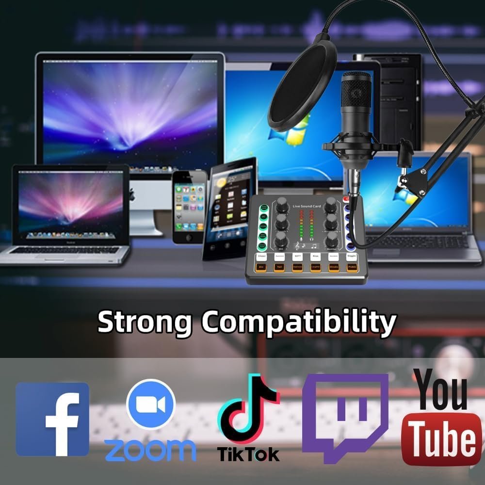 Podcast Equipment Bundle, BM-800 Podcast Microphone Bundle-Voice Changer with live Sound Card-Studio Condenser Microphone for Phone, PC, DJ, Perfect for Recording, Singing, Streaming and Gaming