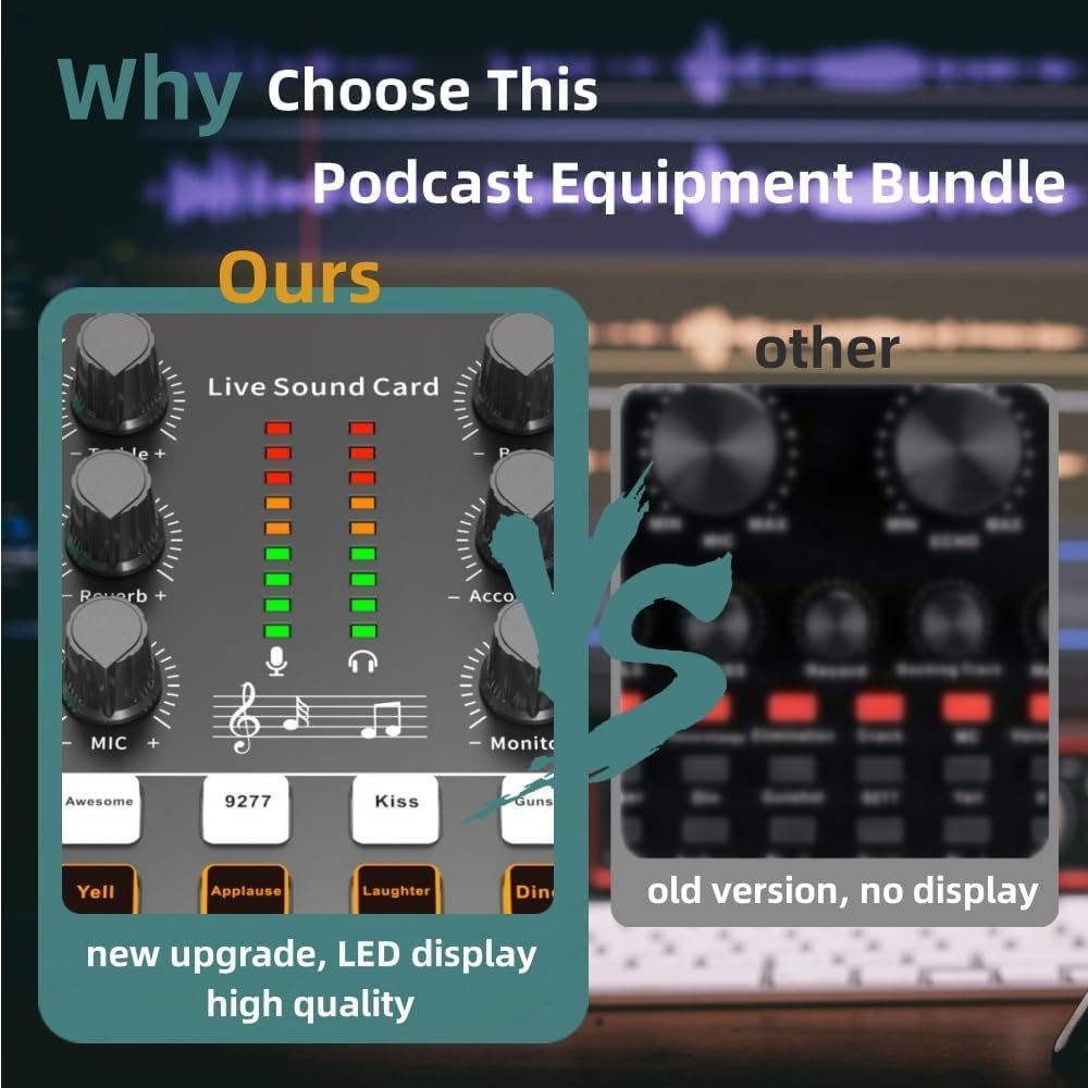 Upgraded Podcast Equipment Bundle – The podcast microphone bundle is equipped with BM-800 podcast mic, stable and adjustable microphone arm, newly-designed live sound card. This studio equipment integrates audio interface into one operation panel, offers rich functions and multiple controls to optimize your voice, free drive, plug and play, designed for podcasting, streaming media, recording music and short videos. All-In-One perfect podcast starter kit.