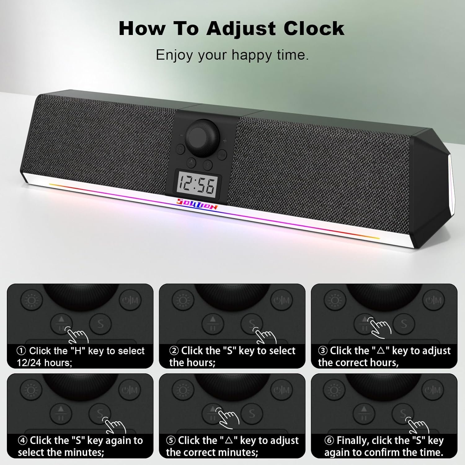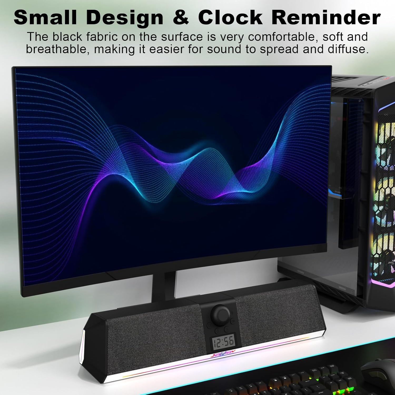 SOULION R80 Bluetooth Computer Speakers, USB Speakers with Digital Clock Display for Desktop Monitor, PC Speakers for Laptop Surround Sound Soundbar with LED Dynamic Light(USB Adapter Included)