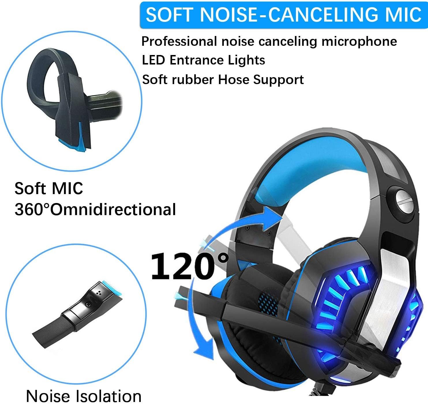 SVYHUOK Gaming Headset for Xbox One,PS4,PC,Laptop,Tablet with Mic,Pro Over Ear Headphones,Noise Canceling,USB Led Light,Stereo Bass Surround for Kids,Mac,Smartphones