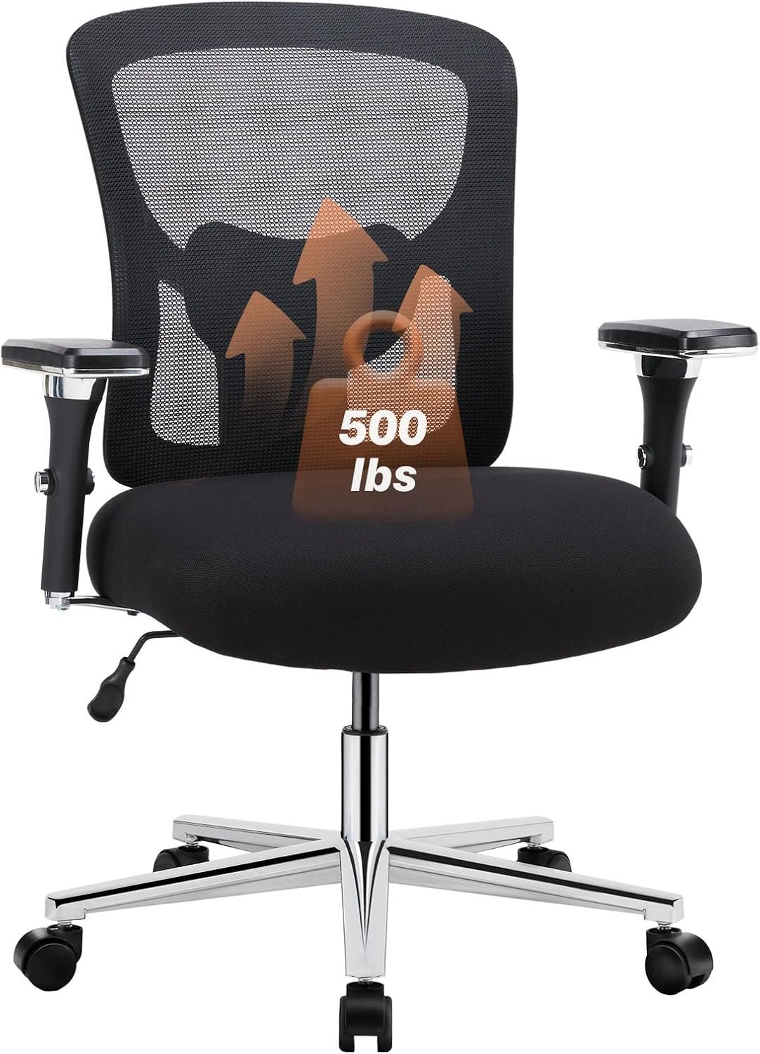 Sweetcrispy Ergonomic 500lbs Wide Heavy Duty Big and Tall Home Office Chair with Adjustable Lumbar Support and Wheels, 3D Armrest, for Adults