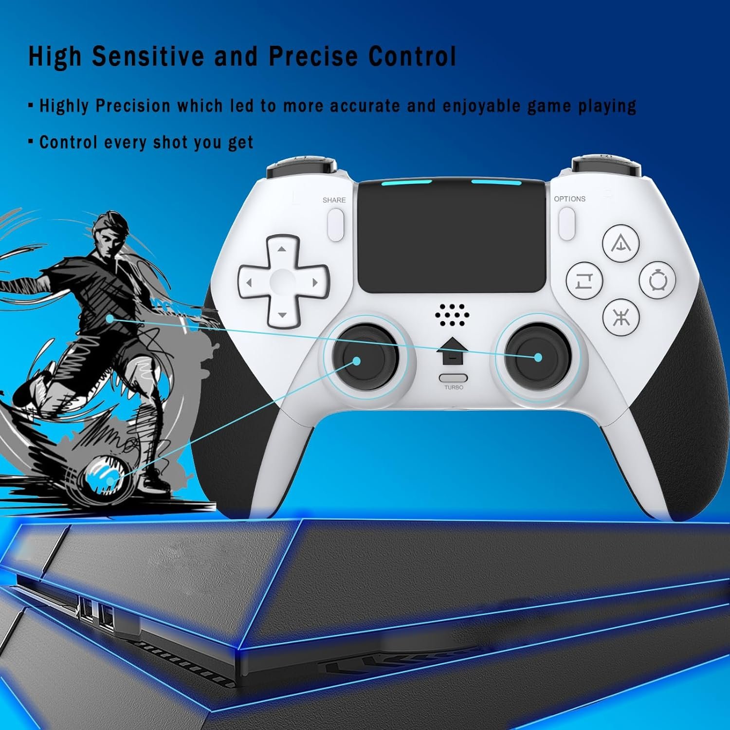 【Precise Controller】–The buttons are with high sensitivity and provide an accurate gaming experience. The analog sticks and trigger buttons are responsively and smoothly, which are almost no input lag and drift.