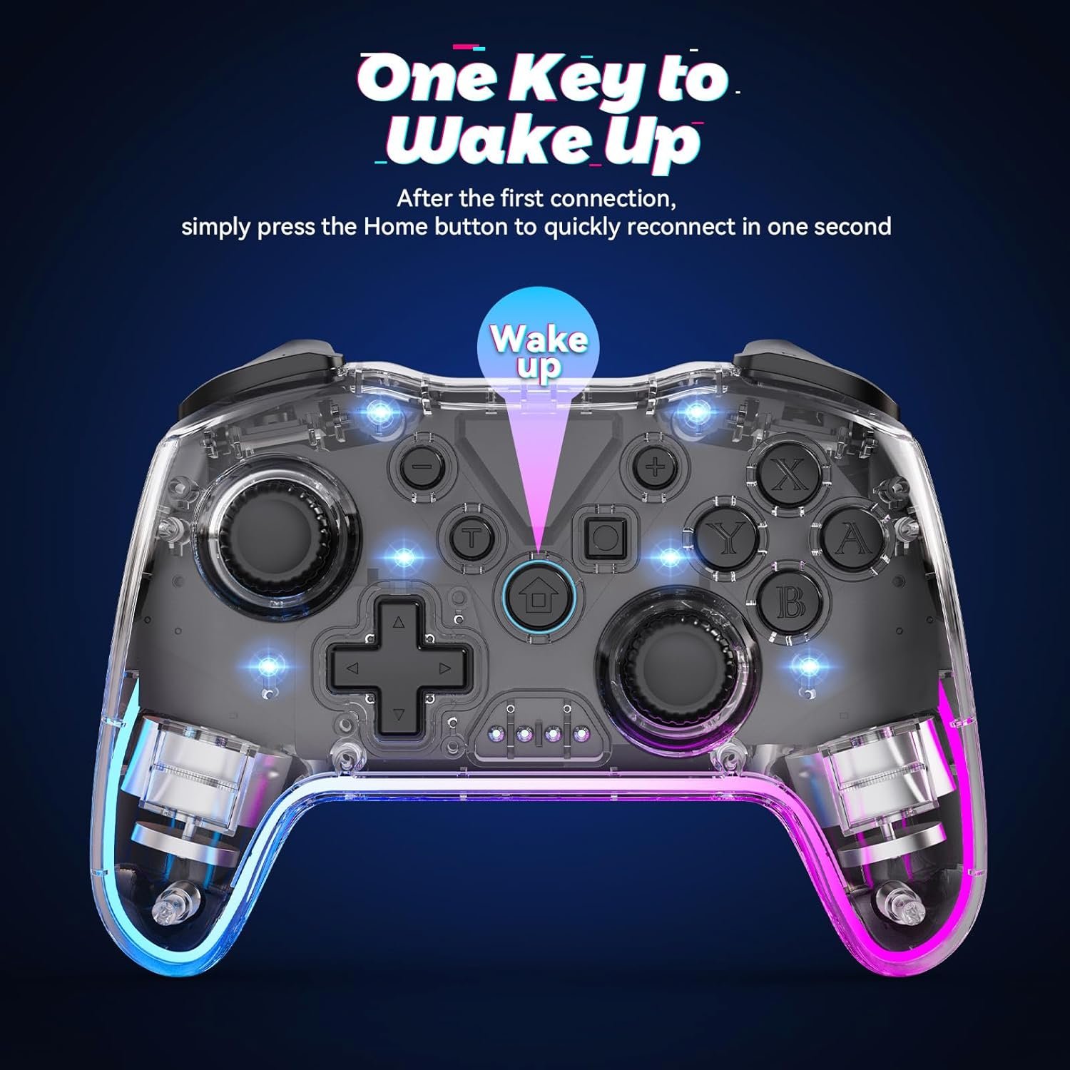 Twylyte Wireless Controller for Nintendo Switch/Lite/OLED & PC/iOS/Android, RGB Backlight with 7 Colors, Adjustable Turbo & Vibration, One-Button Wake-Up, Ergonomic Design for Switch/PC/Mobile Gaming