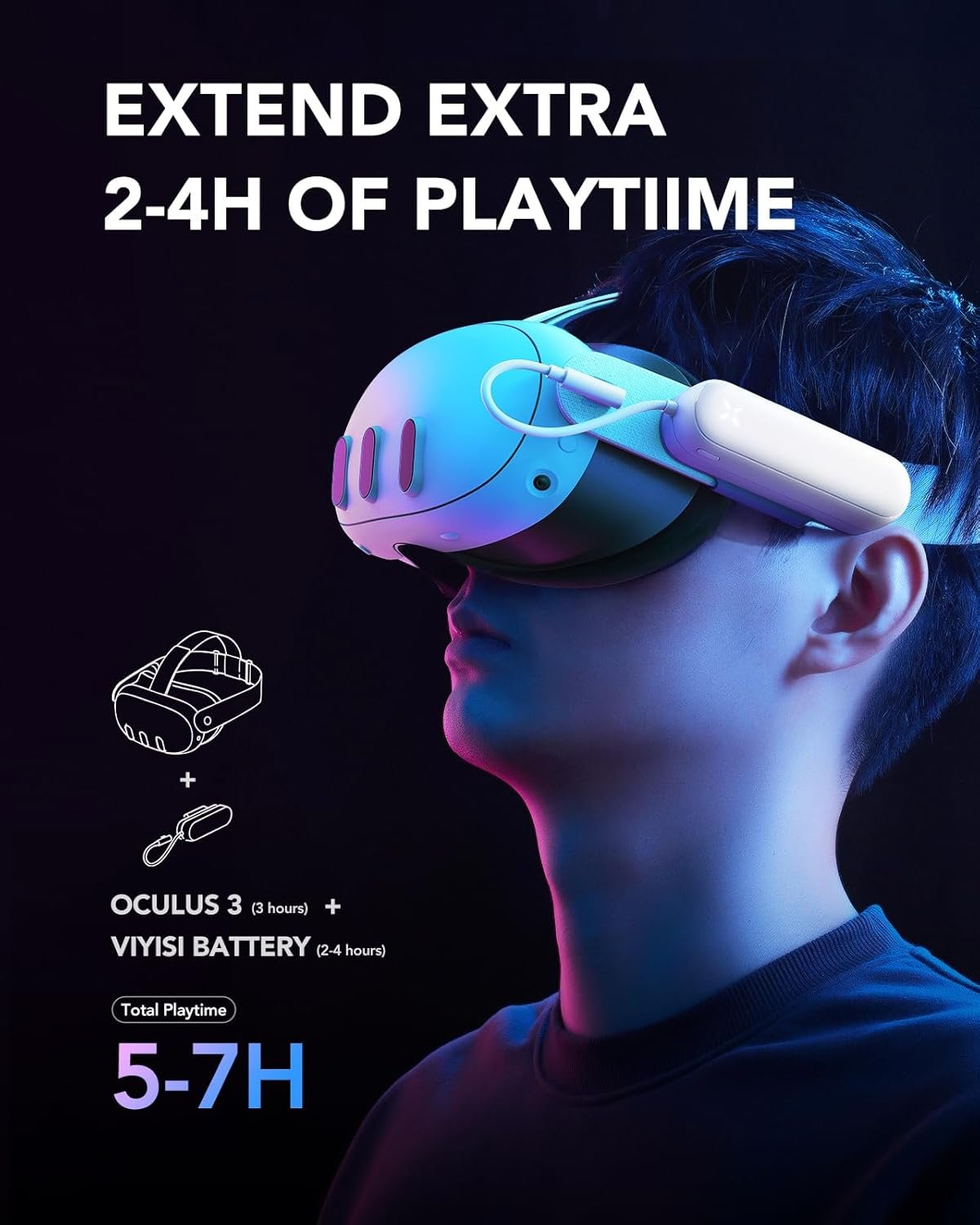 Extend VR Headset Playtime: The 5000mAh battery pack provides an extra 2-4 hours of playtime, while eliminating the hassle of long cables for a seamless, uninterrupted virtual reality experience