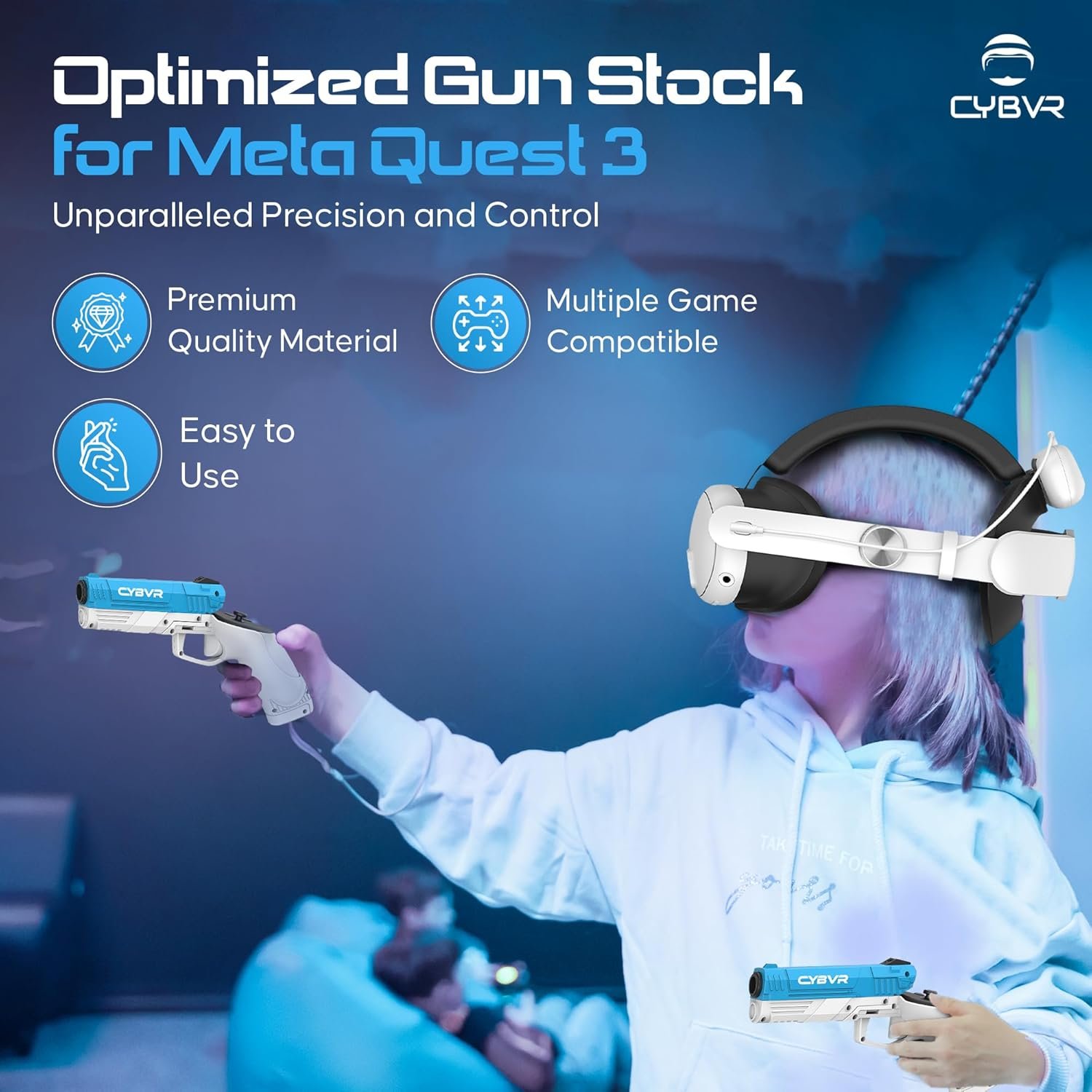 *** DISCLAIMER *** – this Gun Stock for the Meta Quest 3 is an imitation firearm in accordance with US regulations. These are non-functional, and should ONLY be used with the Meta Quest 3 Controllers. ***