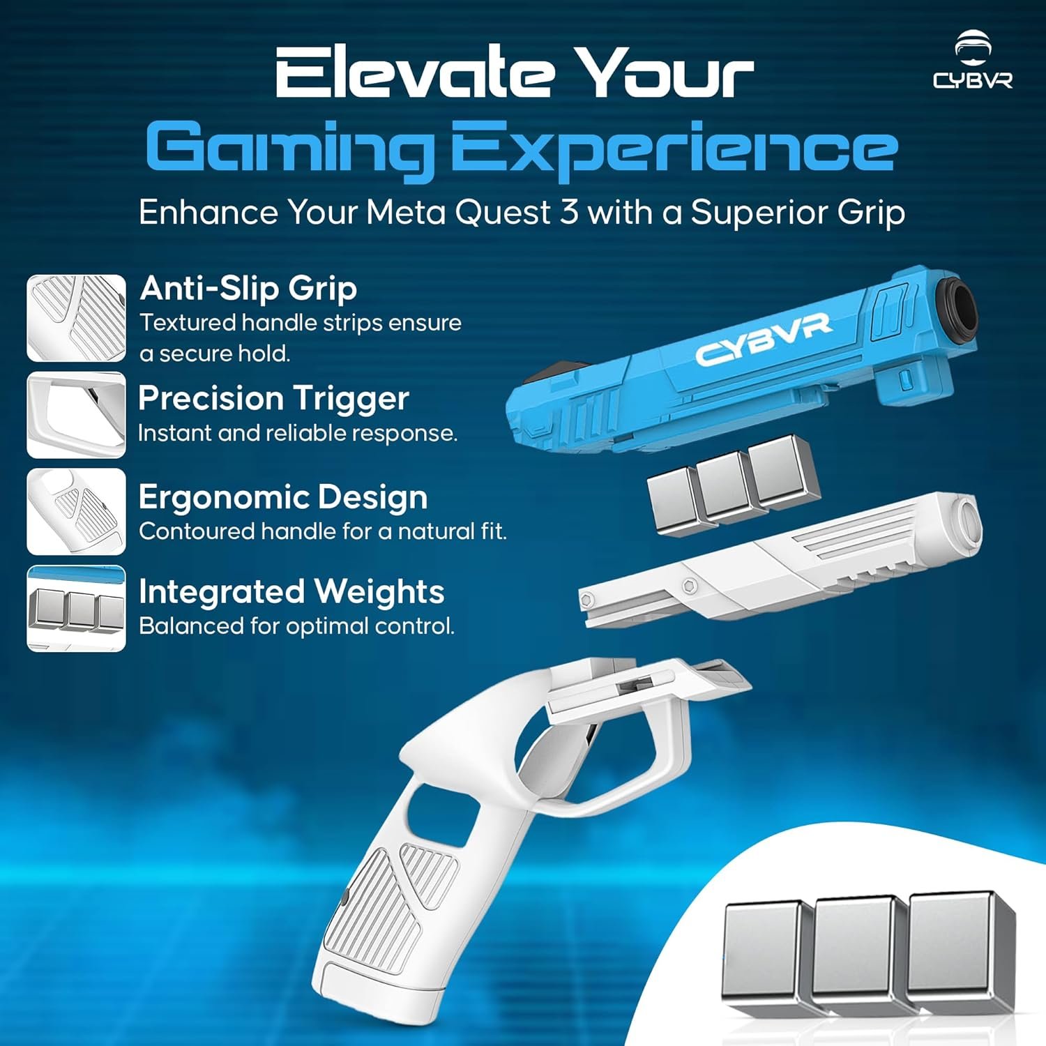 ** Realistic Pistol Weight ** – These Pistol Grips for the Meta Quest 3 have 3 customizable weight blocks, which let you control the weight of your pistol in your VR gaming experience, making these the best Oculus Quest 3 accessories on the market. Experience immersion like never before in first person shooters like Superhot, Pistol Whip, Onward, and much more.