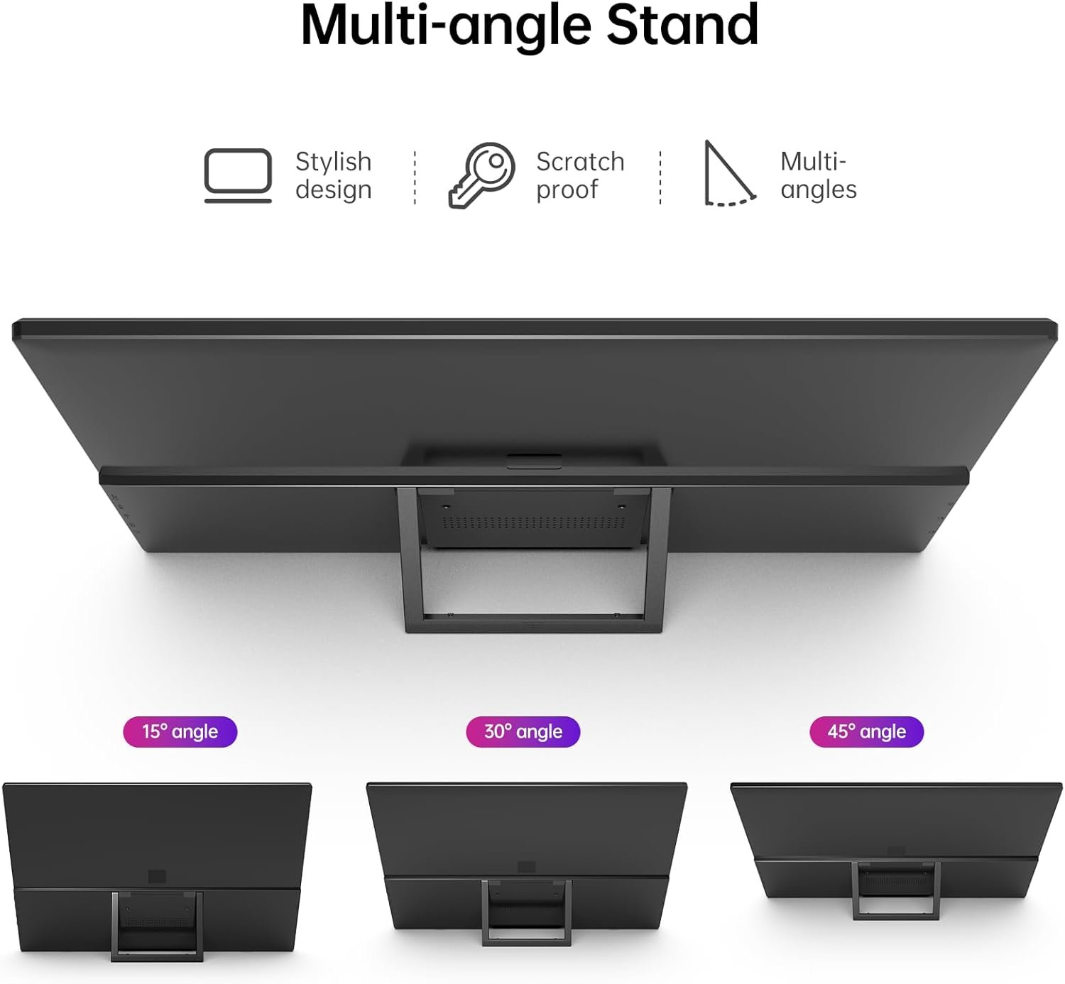 15.6″ FHD Portable Monitor – Featuring a 1920*1080P resolution, 178°FULL viewing angle, HDR, and Low Blue Light Super Clear IPS A-grade screen, this portable screen for laptop enhanced visual experience, reduces eye strain and fatigue.