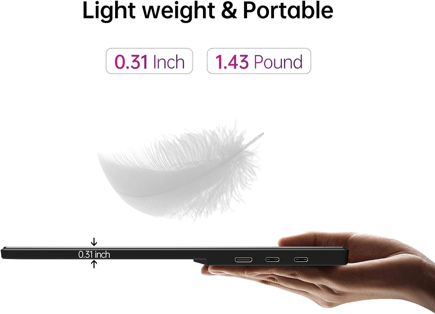 Portable & Light Weight – At just 1.43lbs and 0.31 inch thin, this portable laptop monitor is ultra-portable and perfect for on-the-go productivity or gaming. flexible to use anywhere you need a second screen for laptop. bringing you efficiency for meetings, work from home, and presentations.